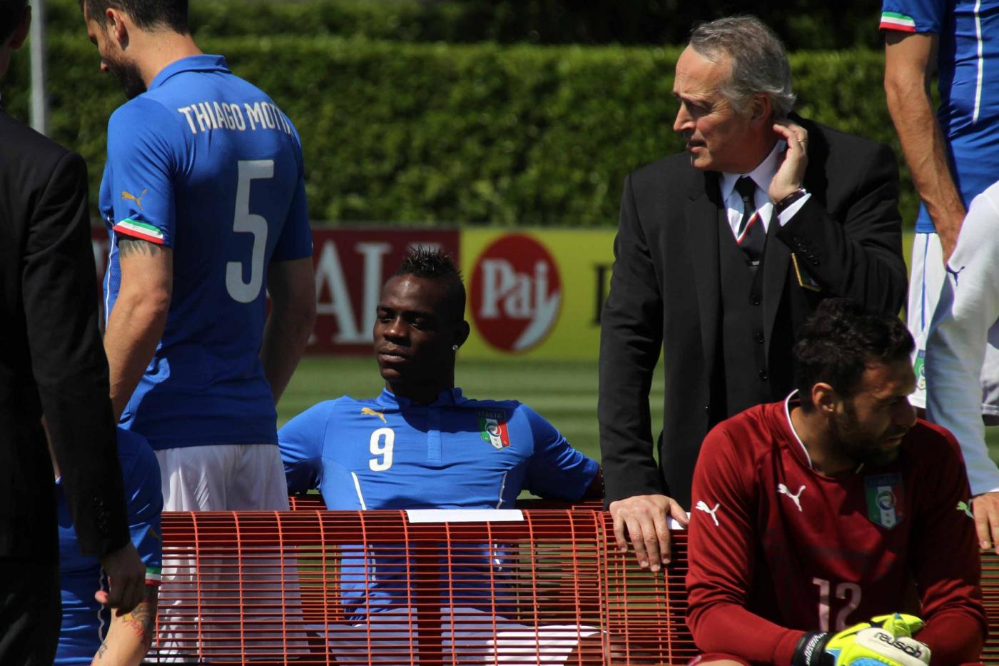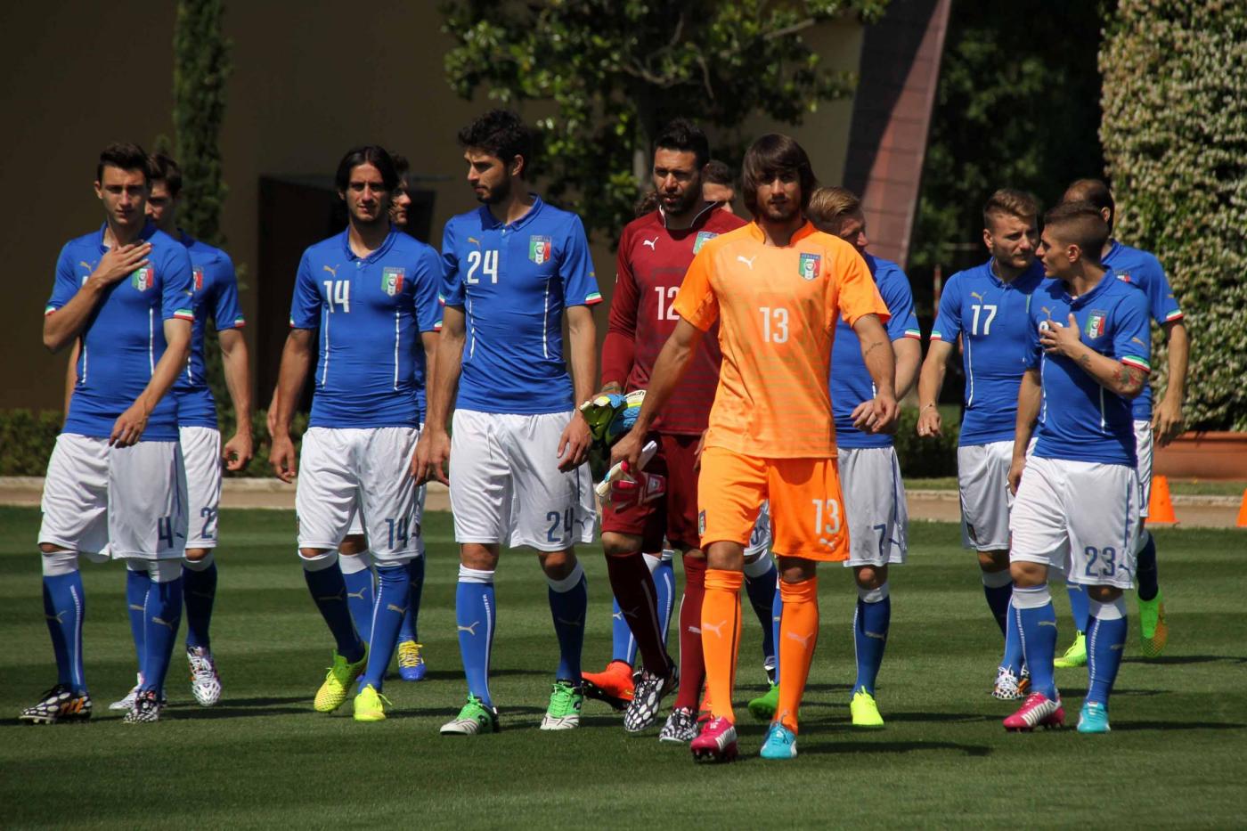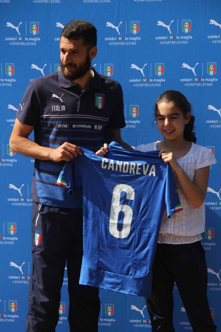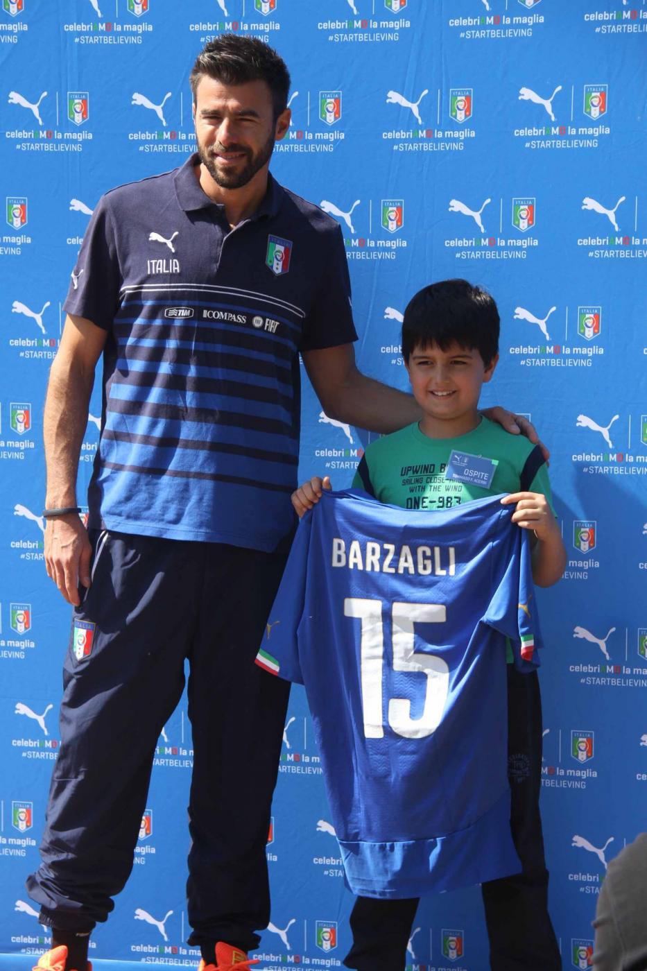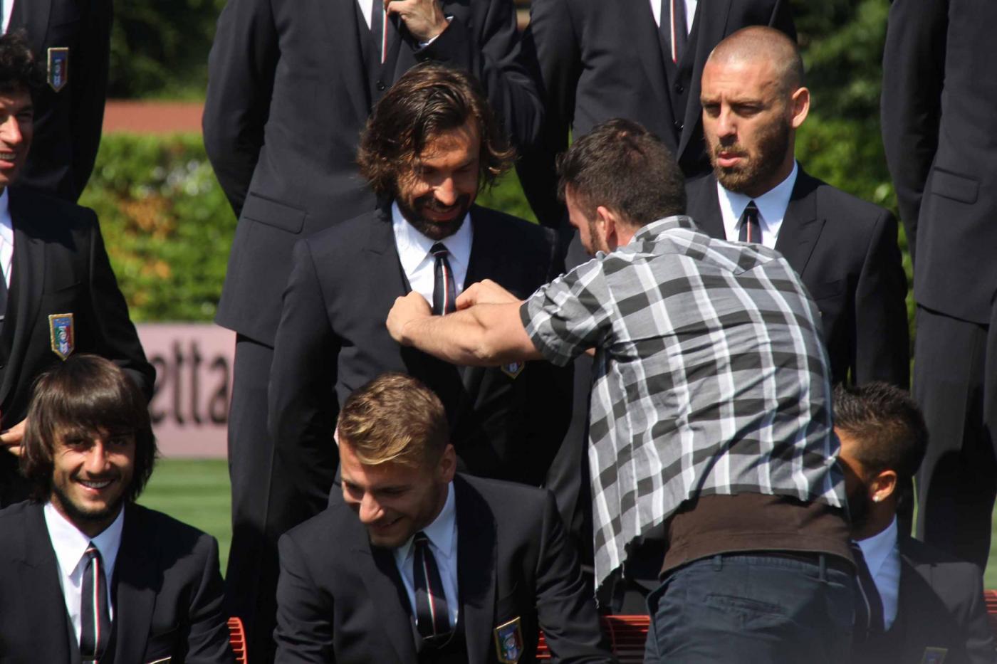 Iย giocatori hanno posato, in mezzo al campo, prima con la divisa ufficiale, poi con quella da calcio, con le rispettive maglie azzurre consegnate, una ad una, da 23 bambini e ragazzi vincitori di un concorso indetto dallo sponsor.ย Assegnati anche i numeri di maglia: a Cassano il 10, a Balotelli il 9. Gigi Buffon, capitano e portiere della Nazionale, vestirร il numero uno.