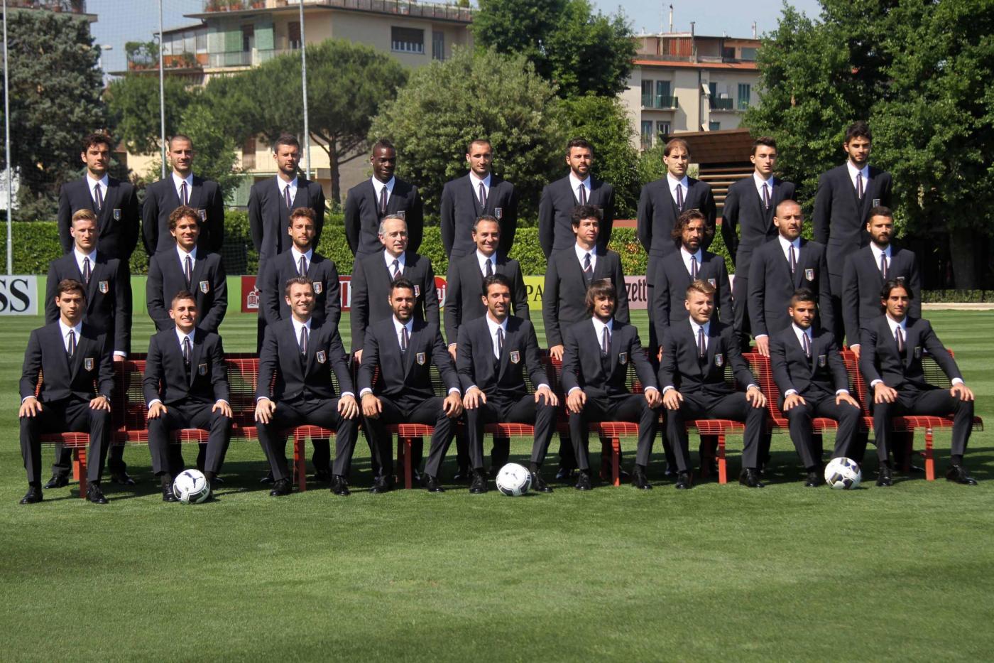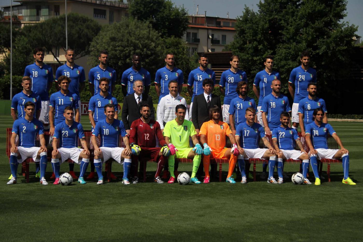 FIRENZE – Foto ufficiale (con la nuova divisa) di gruppo per la Nazionale a Coverciano in vista dei Mondiali 2014 in Brasile.ย