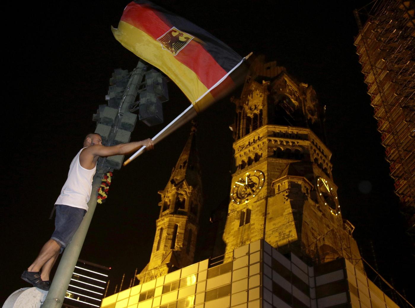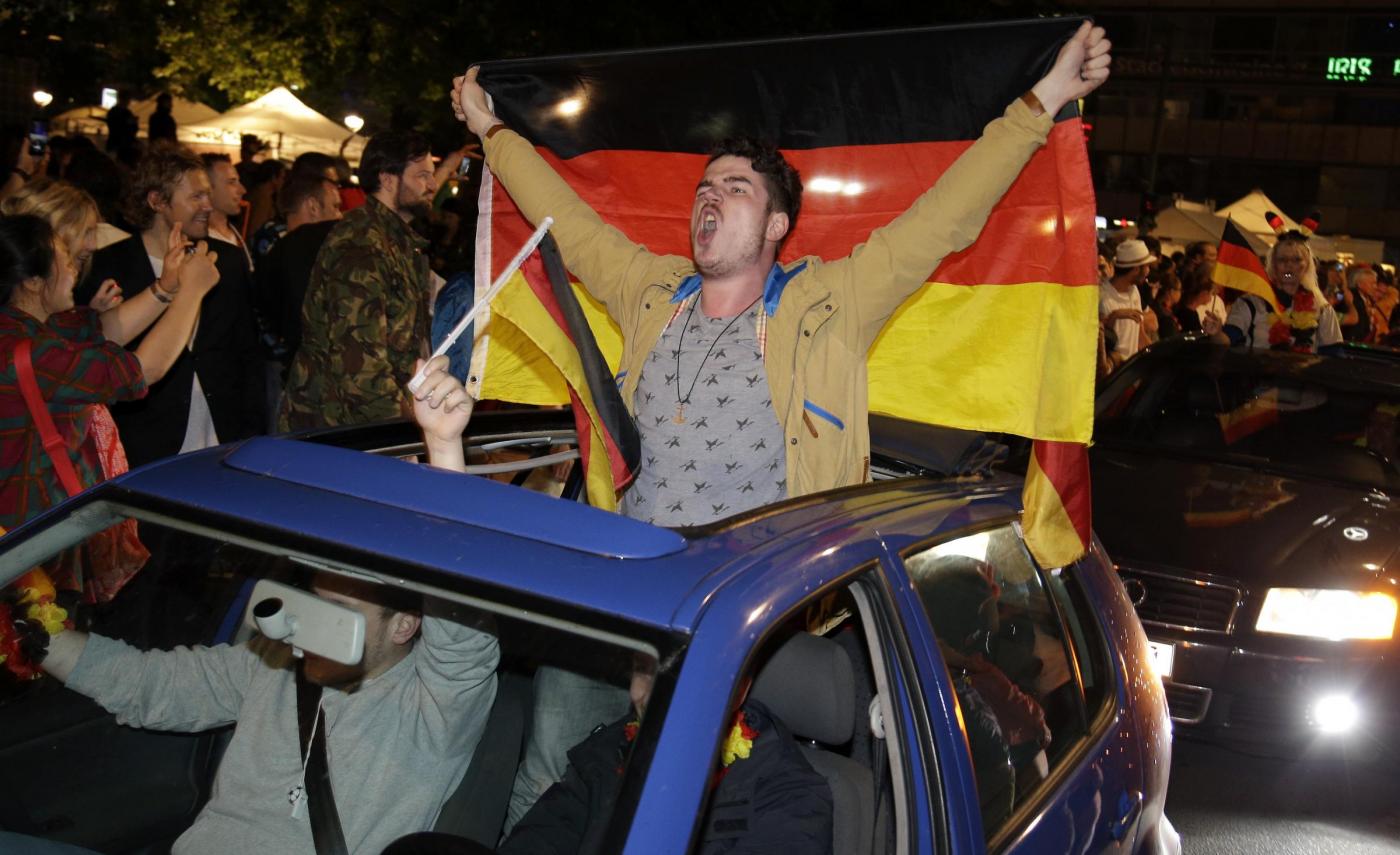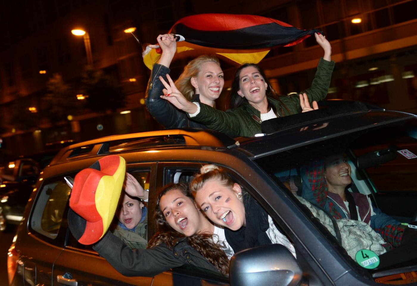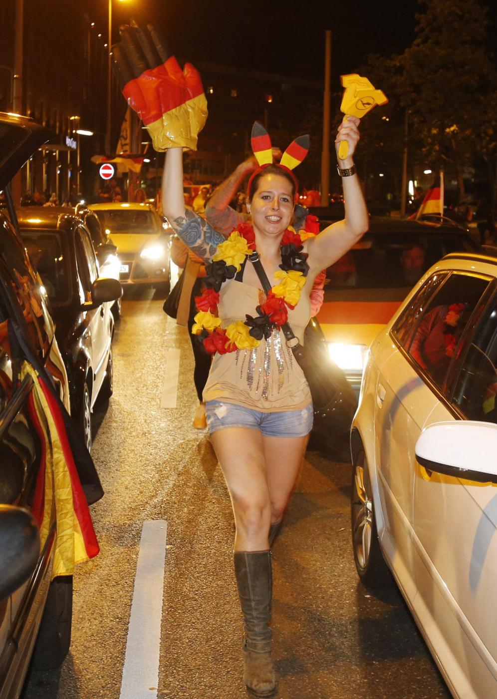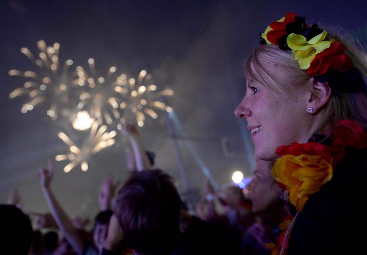 ”Superdeutschland” grida, canta la folla. Perchè stasera i tedeschi, una volta tanto, non sono timidi nè intimoriti dall’idea di essere qualcosa di ‘grande’: la Germania super di Jogi lo è, e va omaggiata senza remore. Oltre a Berlino, i tifosi hanno festeggiato un po’ in tutta la Germania e nel resto del mondo. Anche i tifosi presenti in Brasile hanno festeggiato in strada a Rio de Janeiro: