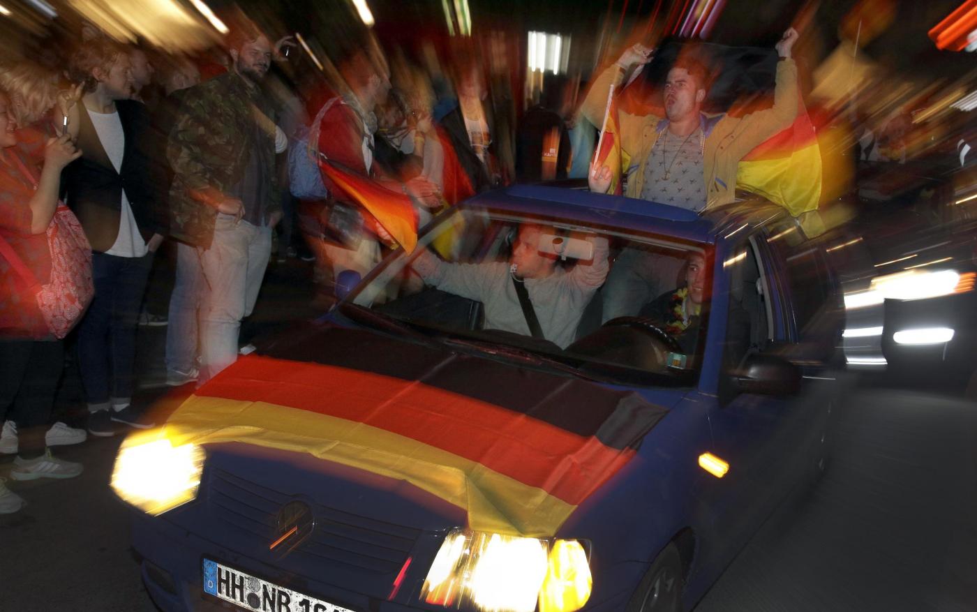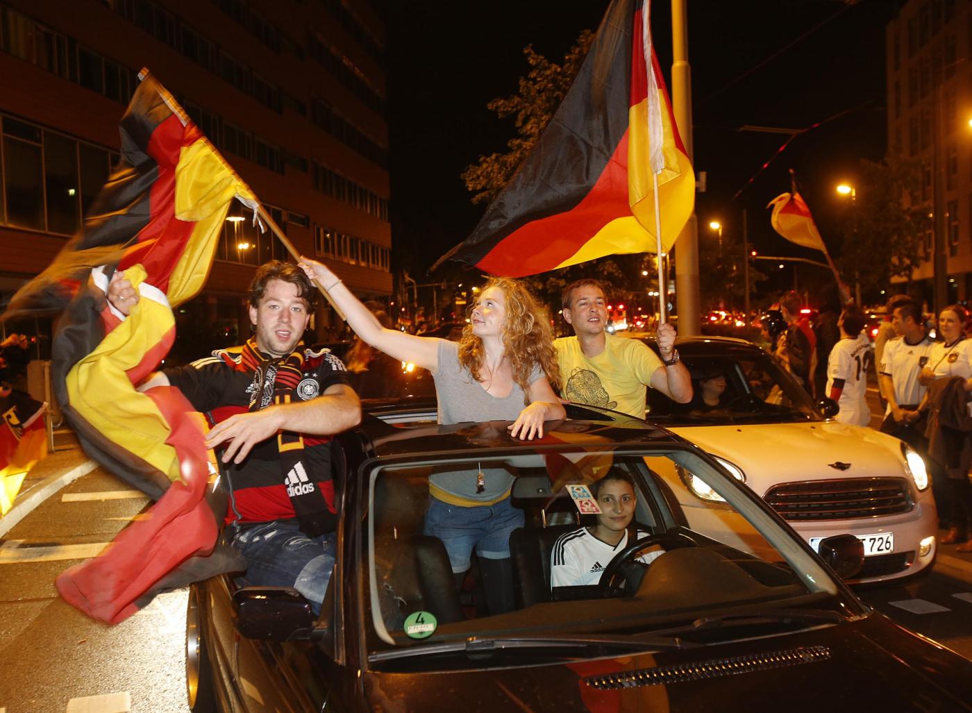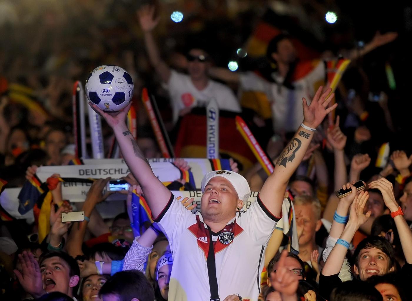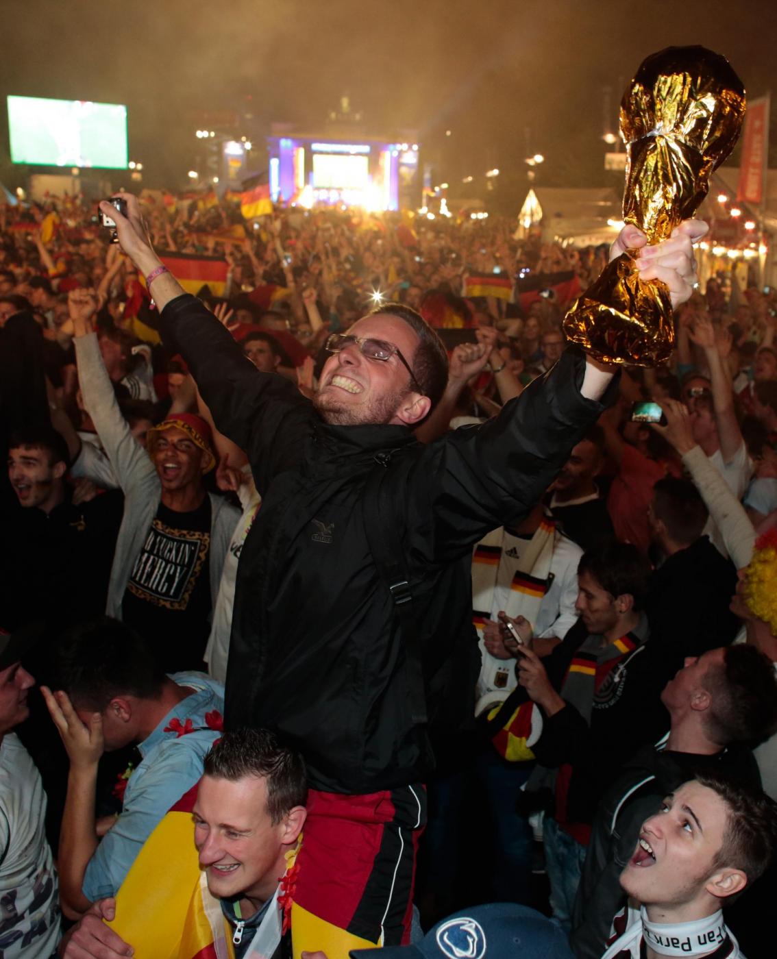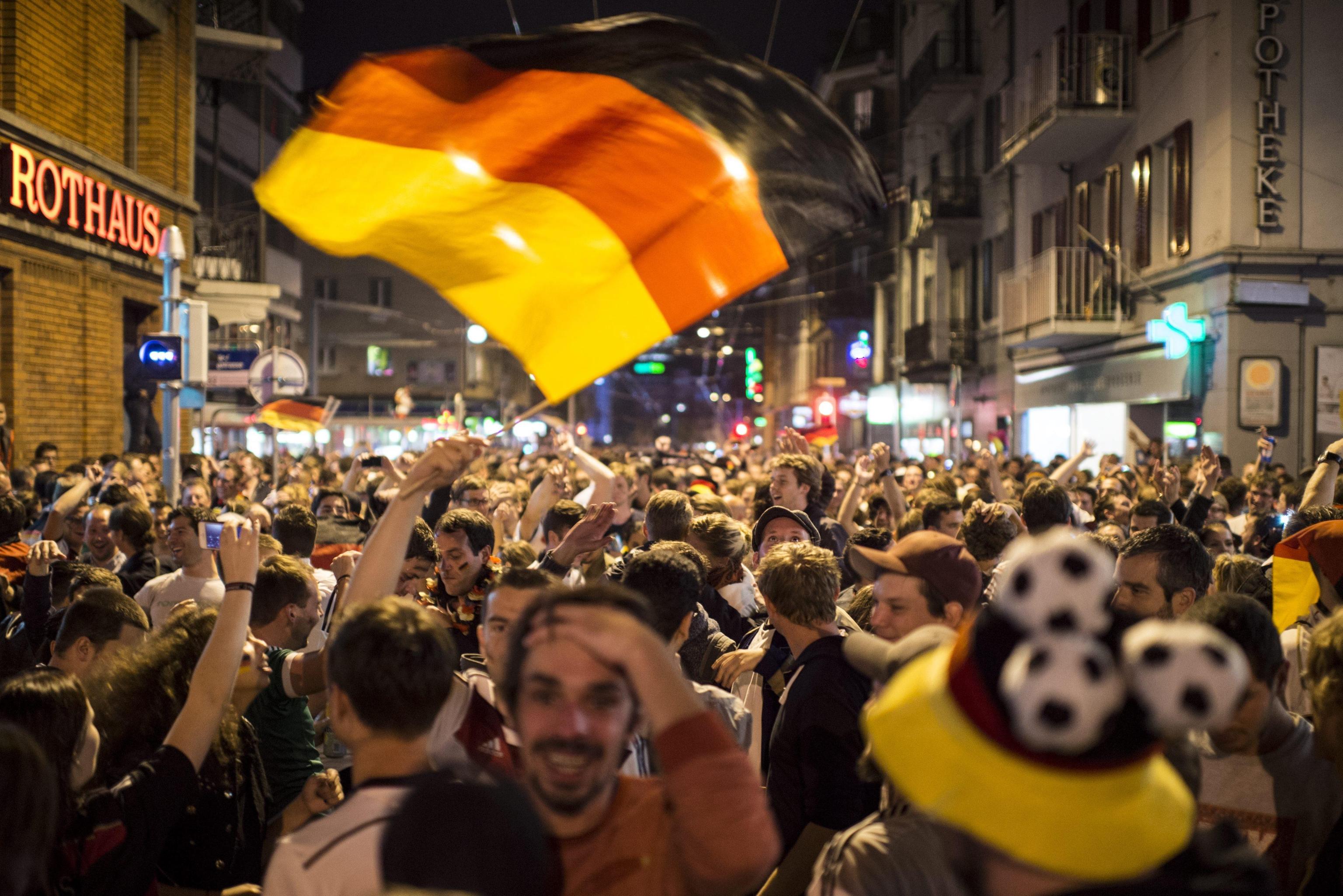 ”Superdeutschland” grida, canta la folla. Perchè stasera i tedeschi, una volta tanto, non sono timidi nè intimoriti dall’idea di essere qualcosa di ‘grande’: la Germania super di Jogi lo è, e va omaggiata senza remore. Oltre a Berlino, i tifosi hanno festeggiato un po’ in tutta la Germania e nel resto del mondo. Anche i tifosi presenti in Brasile hanno festeggiato in strada a Rio de Janeiro:
