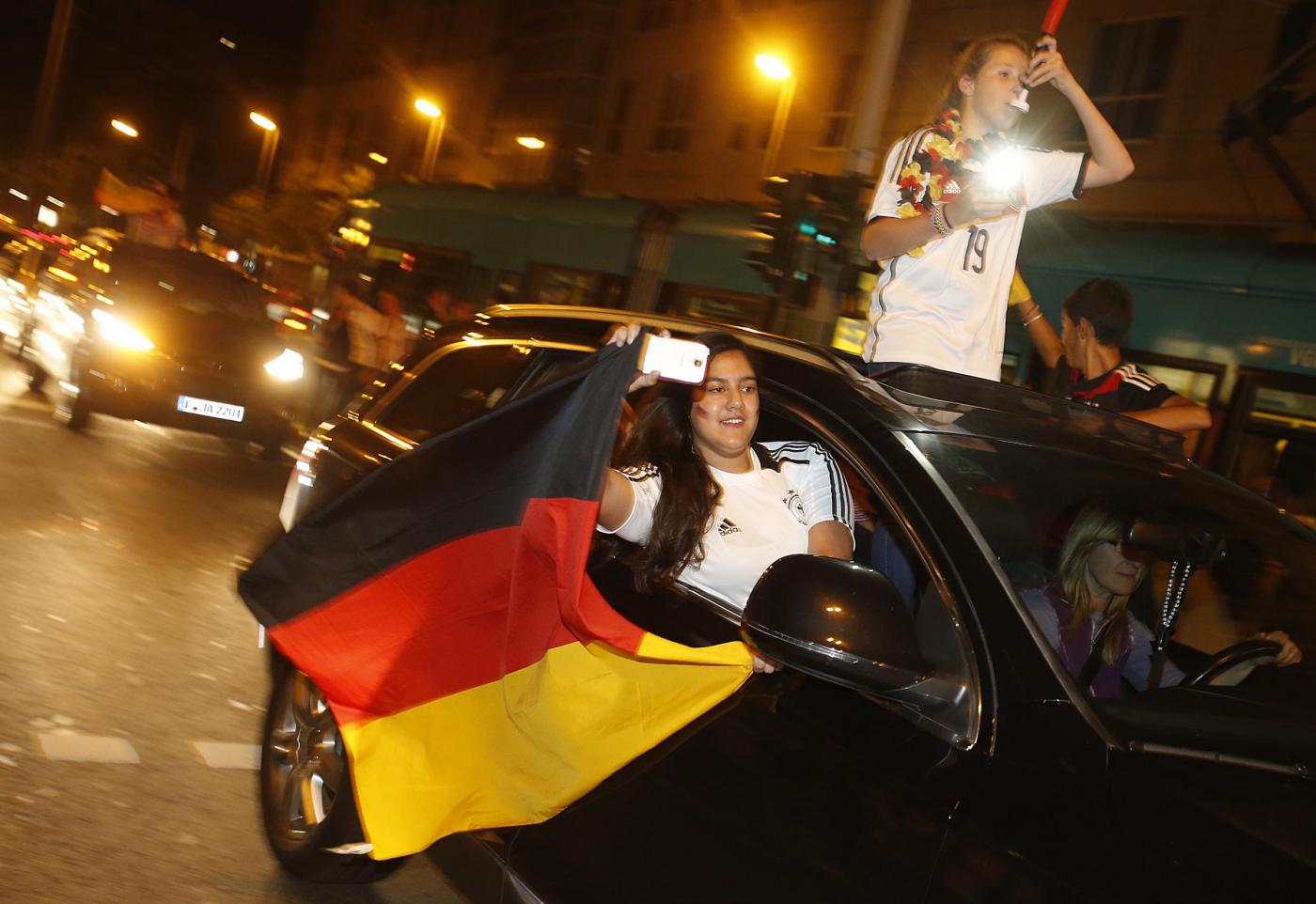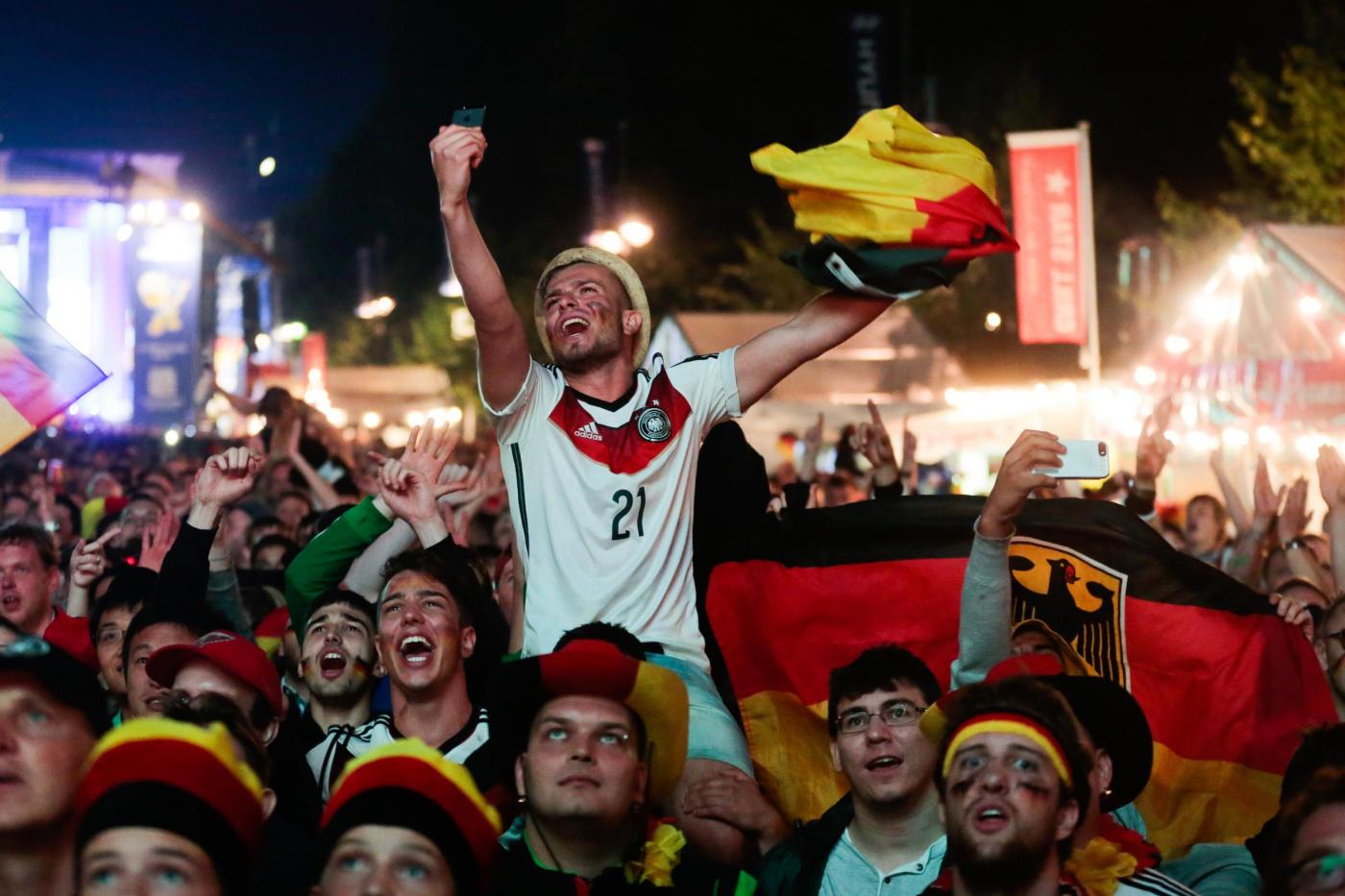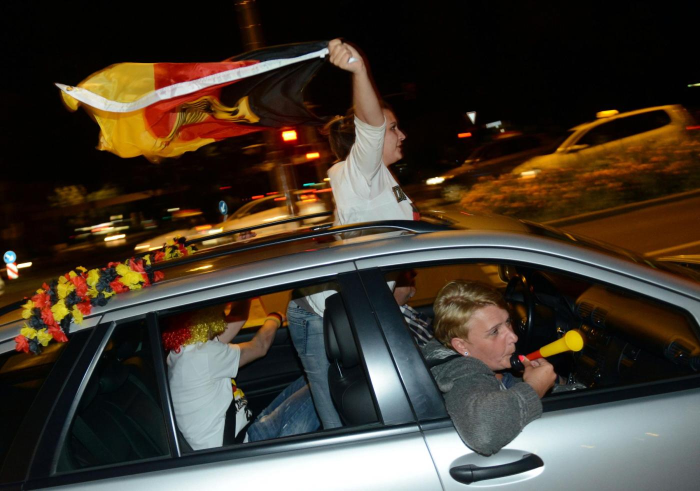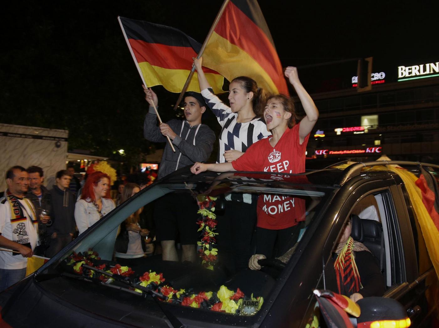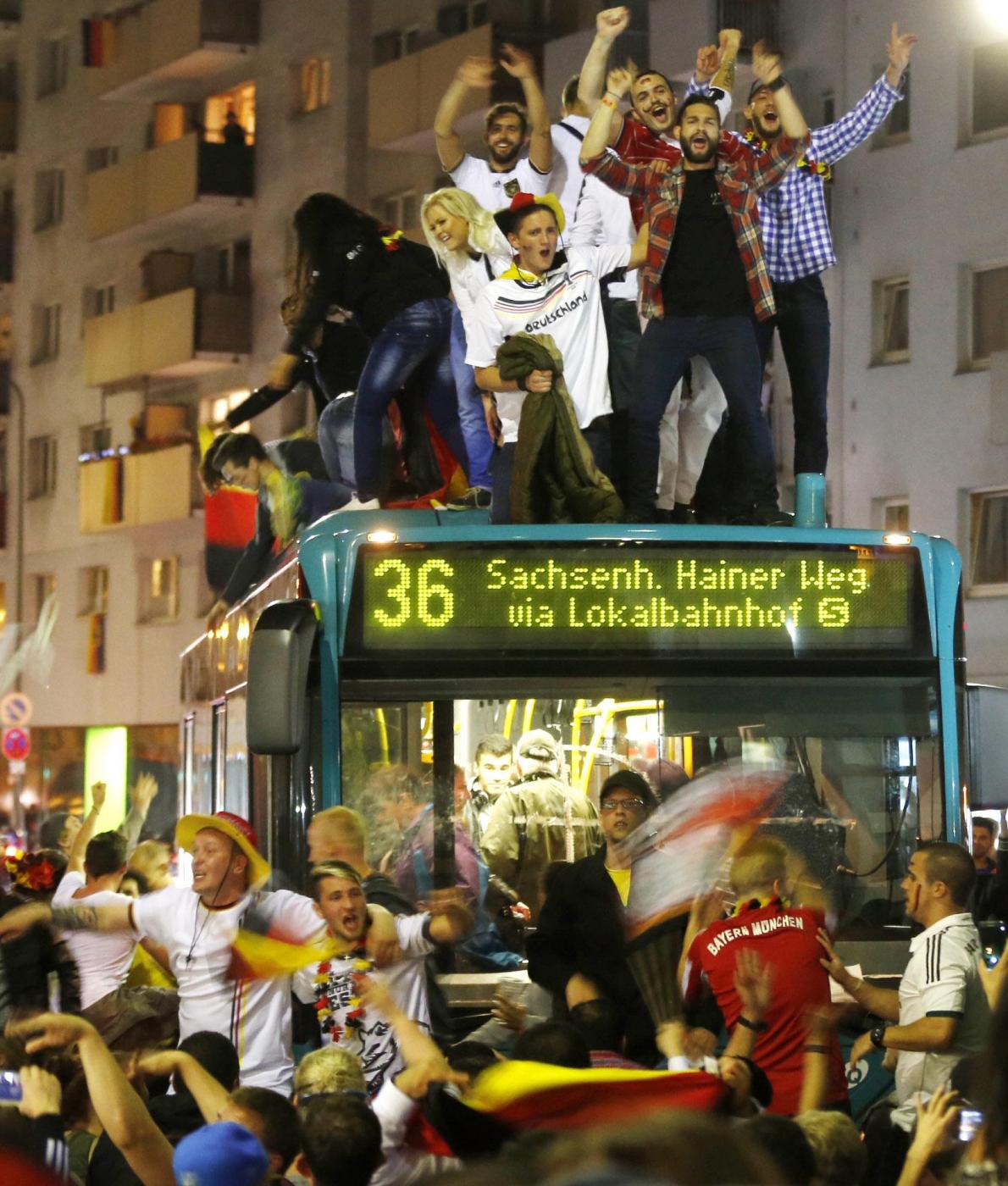 ”Superdeutschland” grida, canta la folla. Perchè stasera i tedeschi, una volta tanto, non sono timidi nè intimoriti dall’idea di essere qualcosa di ‘grande’: la Germania super di Jogi lo è, e va omaggiata senza remore. Oltre a Berlino, i tifosi hanno festeggiato un po’ in tutta la Germania e nel resto del mondo. Anche i tifosi presenti in Brasile hanno festeggiato in strada a Rio de Janeiro: