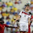 – 5′ st: Mueller crossa dalla trequarti per Gotze che incorna di testa. Sulla corsa il pallone va a sbattere sul ginocchio del tedesco diventando imparabile per Kwarasey. – 8′ st: palla in mezzo dalla destra. Andre Ayew stacca di testa più in alto di Mustafi e insacca alla destra di Neuer per l’1-1. – 17′ st: Muntari recupera palla a centrocampo e lancia Gyan che batte Neuer in uscita con un diagonale a mezza altezza. – 25′ st: angolo di Kroos, in mischia la zampata di Klose che pareggia ed eguaglia il record di 15 reti ai Mondiali di Ronaldo.
