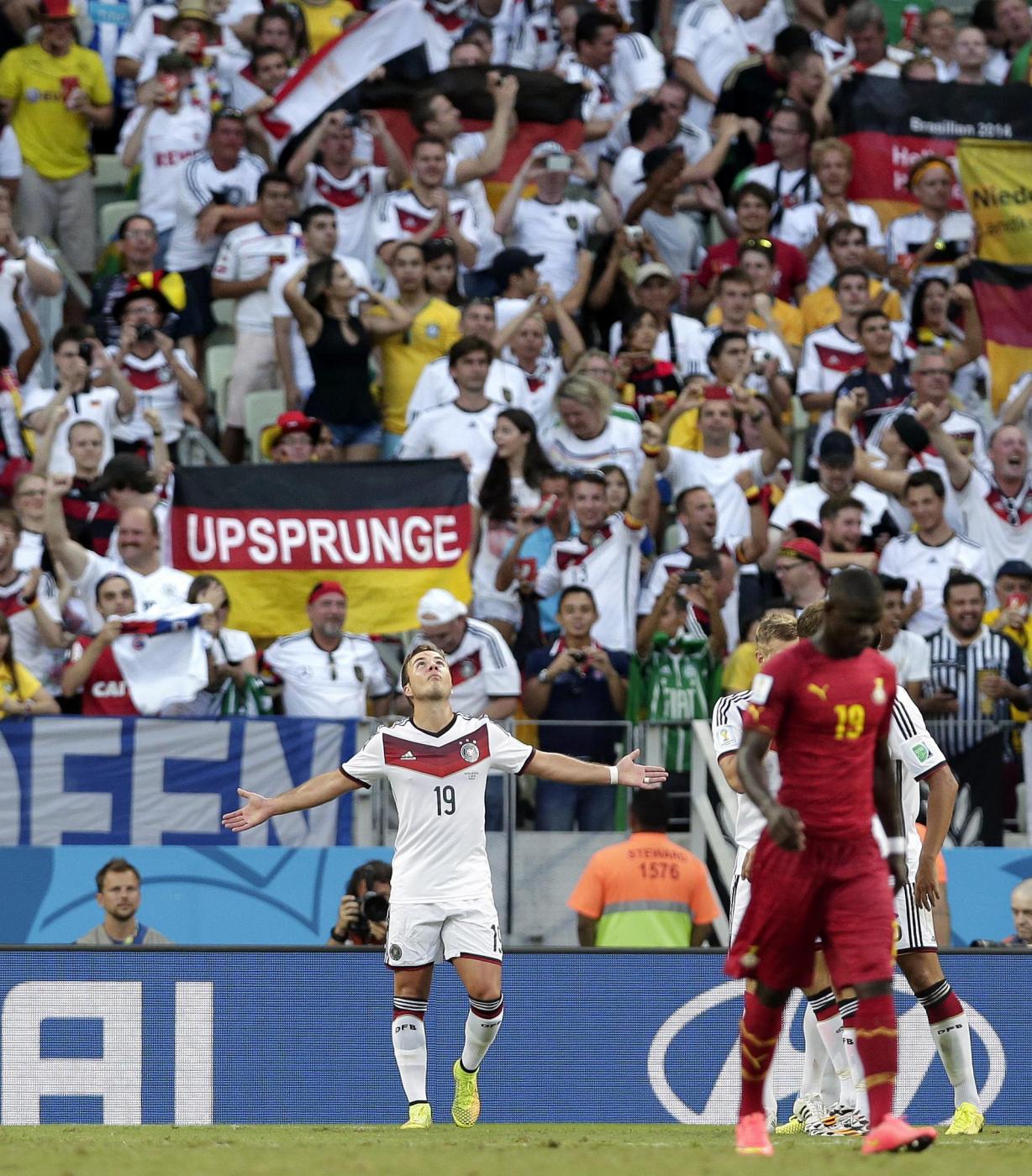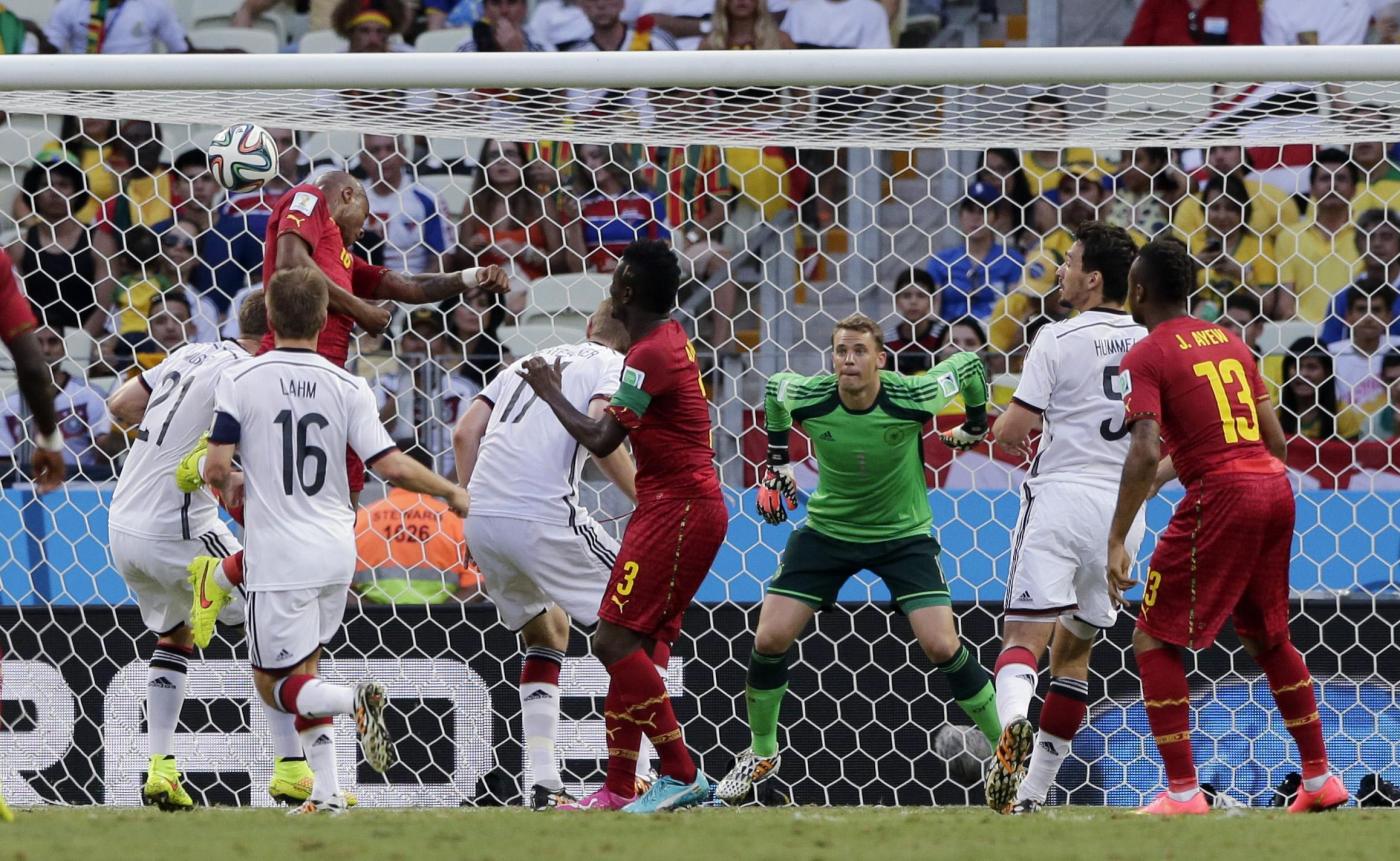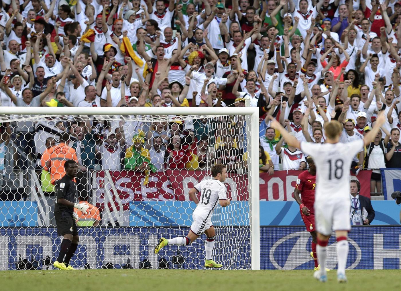 – 5′ st: Mueller crossa dalla trequarti per Gotze che incorna di testa. Sulla corsa il pallone va a sbattere sul ginocchio del tedesco diventando imparabile per Kwarasey. – 8′ st: palla in mezzo dalla destra. Andre Ayew stacca di testa più in alto di Mustafi e insacca alla destra di Neuer per l’1-1. – 17′ st: Muntari recupera palla a centrocampo e lancia Gyan che batte Neuer in uscita con un diagonale a mezza altezza. – 25′ st: angolo di Kroos, in mischia la zampata di Klose che pareggia ed eguaglia il record di 15 reti ai Mondiali di Ronaldo.