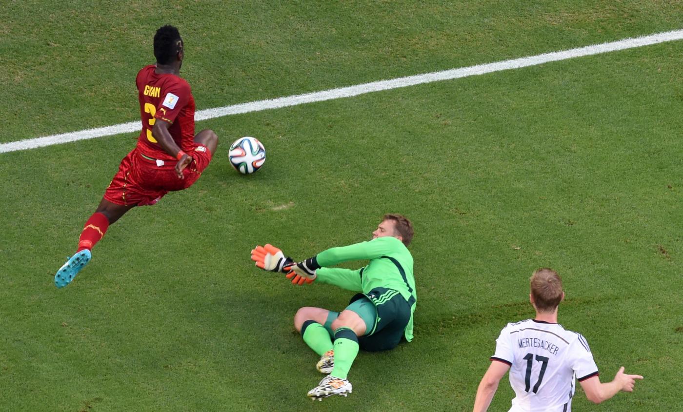 ROMA – Il Ghana mette alla frusta la Germania nel secondo turno del Girone G, costringendola al pari (2-2). Le Black Stars di Kwesi Appiah vanno in svantaggio con il gol di Mario Gotze al 6′ della ripresa, quindi pareggiano tre minuti più tardi con André Ayew ed al 18′ passano in vantaggio con Asamoah Gyan. Il solito Miro Klose, in campo da soli due minuti, al 26′ pareggia raggiungendo Ronaldo a quota 15 reti in un Mondiale.
