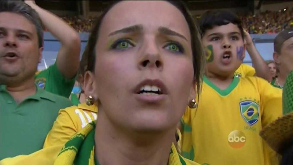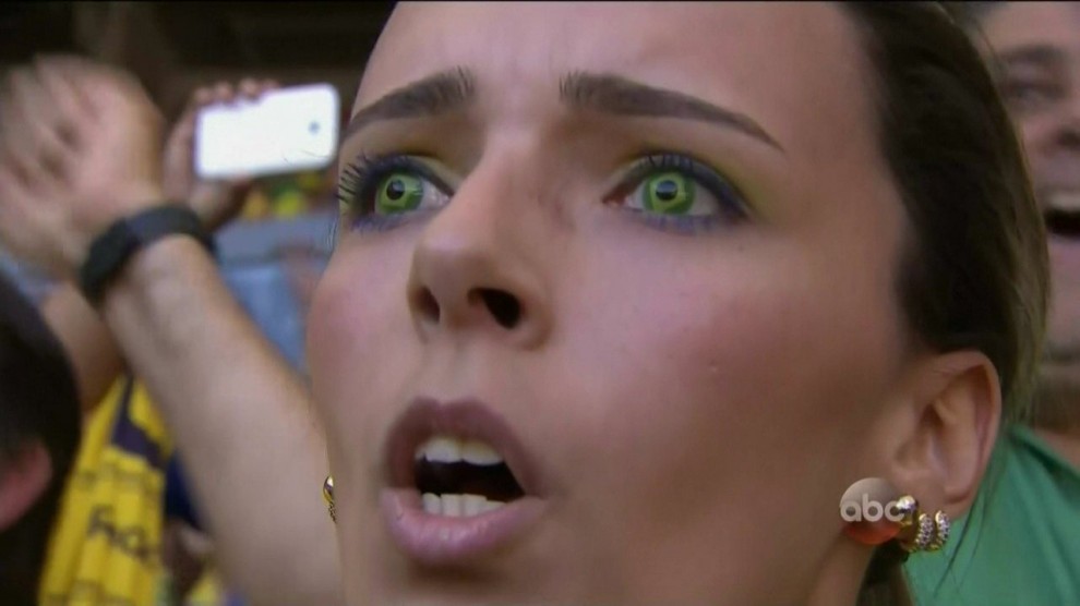 La misteriosa tifosa del Brasile con le lenti a contatto verde oro inquadrate da Globo Tv durante i rigori contro il Cile: sul web è cominciata la caccia al nome.