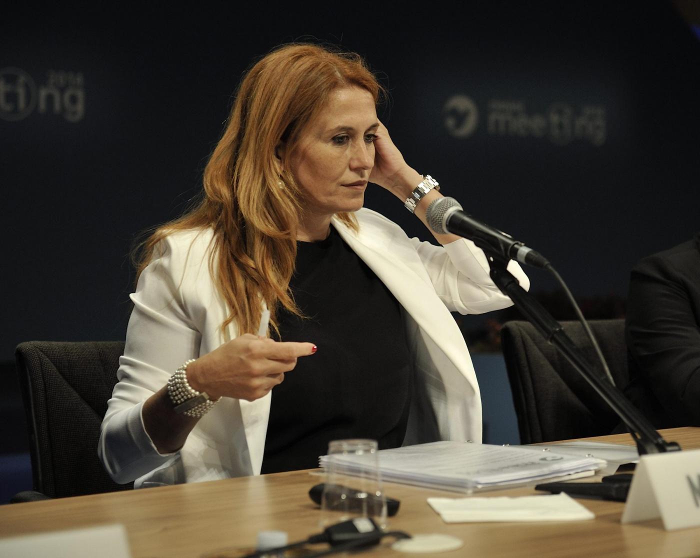 La giornalista Monica Maggioni durante il dibattito su Scenari mediorientali e il fenomeno Daesh presso la sede RAI di viale Mazzini a Roma, 9 luglio 2015. ANSA/CLAUDIO PERI