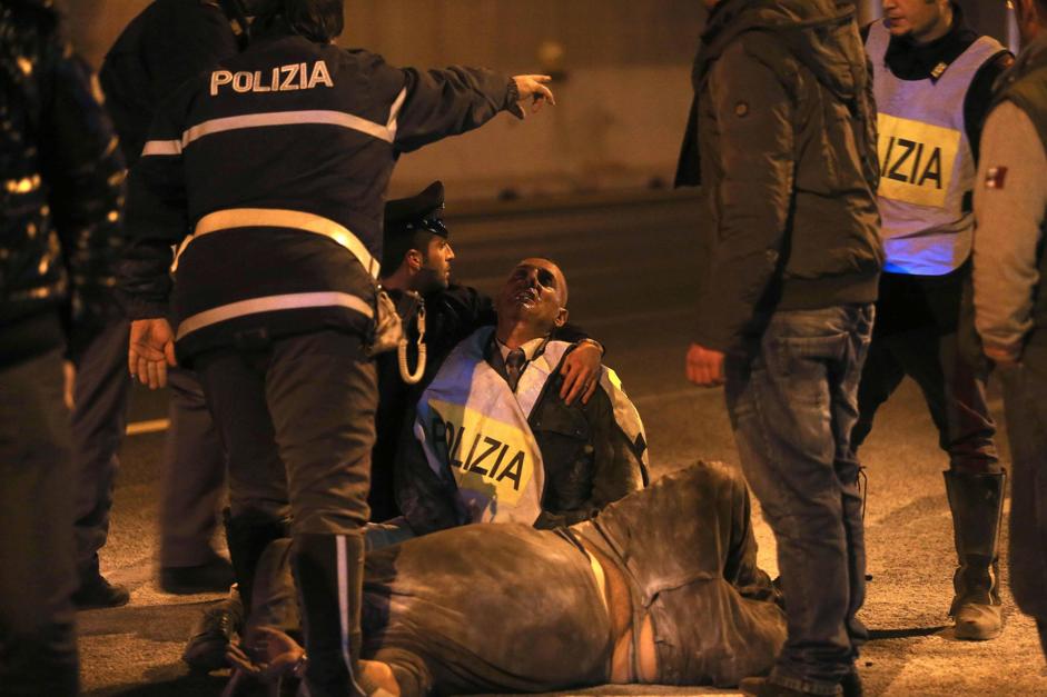 I due poliziotti sono intervenuti gettandosi sull’uomo: tutti e tre sono stati soccorsi da vigili del fuoco e operatori del 118. Le loro condizioni non destano attualmente preoccupazione, anche se il commerciante ed uno dei poliziotti hanno riportato ustioni estese su tutto il corpo.