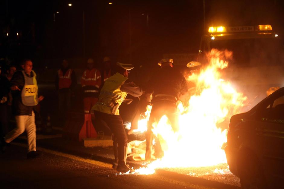 MONZA – Si è cosparso di benzina e si è dato fuoco. Una sequenza drammatica, immortalata dal fotografo, fino al momento dei soccorsi, quando uno dei poliziotti rimane ustionato per salvare il commerciante che protestava contro le barriere anti rumore in costruzione davanti al suo ristorante. Barriere che, a suo dire, complicavano una situazione economica già difficile. E a nulla sono servite le proteste perché i lavori non fossero portati a termine. Per questo il proprietario, C. D. G., si è dato fuoco in strada la sera del 24 febbraio in viale Lombardia, a Monza. Sul posto è intervenuta la polizia e il comandante e un agente sono rimasti ustionati cercando di soccorrere l’uomo, protagonista del disperato gesto.