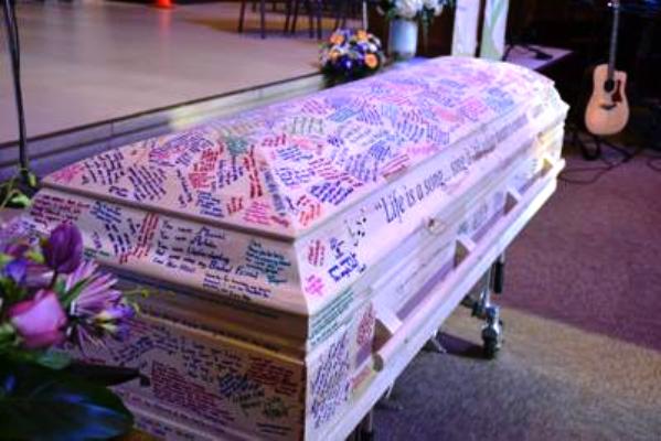 Per questo i genitori le hanno voluto fare un regalo d’addio speciale: un toccante e commovente tributo in stile ‘Yearbook’ da realizzare sulla sua bara bianca, durante la cerimonia funebre che si è tenuta il 30 gennaio, sulla quale c’era una frase: “La vita è una canzone… cantate dal profondo del vostro cuore. Laura”.
