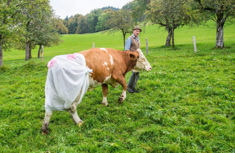 L’allevatore che ha avuto l’idea è Johann Huber. Al momento ha messo il grosso pannolone solo ad una delle sue mucche, Doris, ma ha detto che non esclude di estendere la dimostrazione anche agli altri suoi 18 animali. Nei mesi scorsi la norma era stata fortemente criticata in Italia, anche dagli allevatori della provincia di Bergamo.