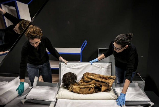 LIONE (FRANCIA) – E’ stato esposto al Musee des Confluences di Lione, lo scheletro mummificato di una donna seduta in posizione fetale. La donna probabilmente di 50 anni, è stata trovata dal Ychsma Project team in una antica tomba nel sito archeologico peruviano di Pachacamac che si trova sulla costa del Pacifico circa 30 km a sud di Lima.