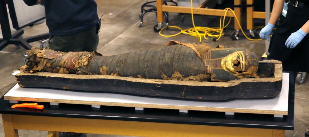 Una tac aveva consentito agli studiosi di dare un’occhiata dentro il sarcofago prima dell’apertura e i raggi hanno mostrato che i piedi erano staccati dal corpo e parte della maschera che copriva il viso era danneggiata. Gli scienziati sono già all’opera per riparare i danni prima che il sarcofago venga trasferito a Los Angeles.