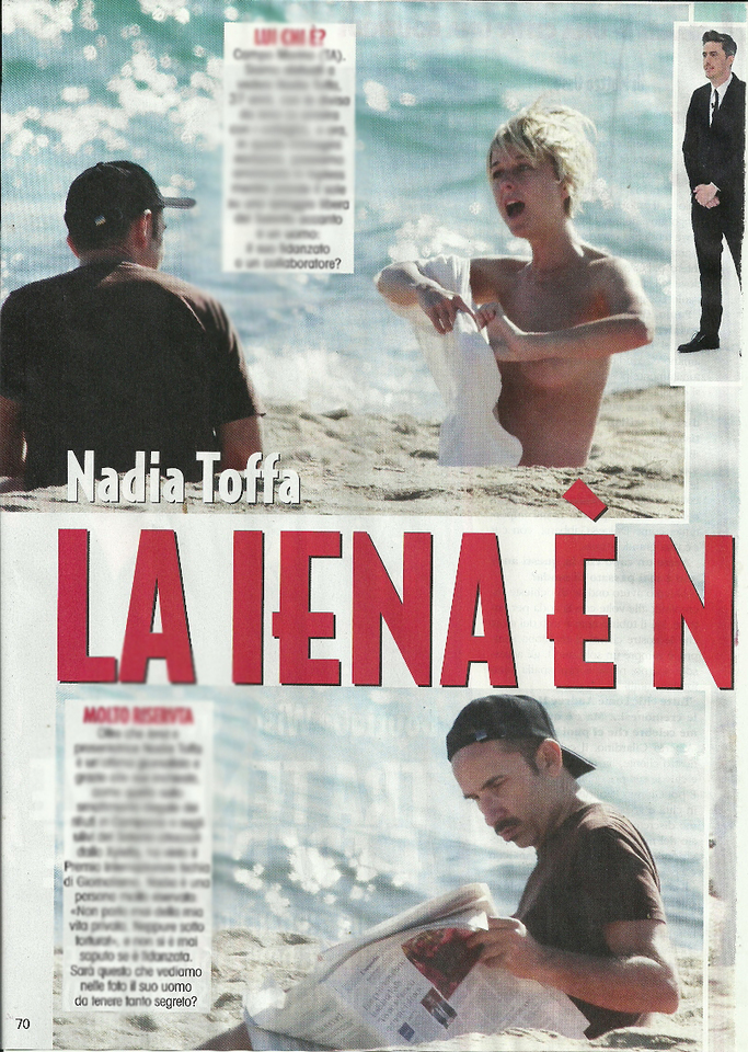 La conduttrice ora ricarica le batterie per la prossima stazione e si fa vedere sulla spiaggia di Campo Marino in Molise. La Toffa viene fotografata da “Novella2000” mentre si rilassa al sole e per rendere l’abbronzatura un po’ più integrale sfoggia uno dei primi topless della stagione.