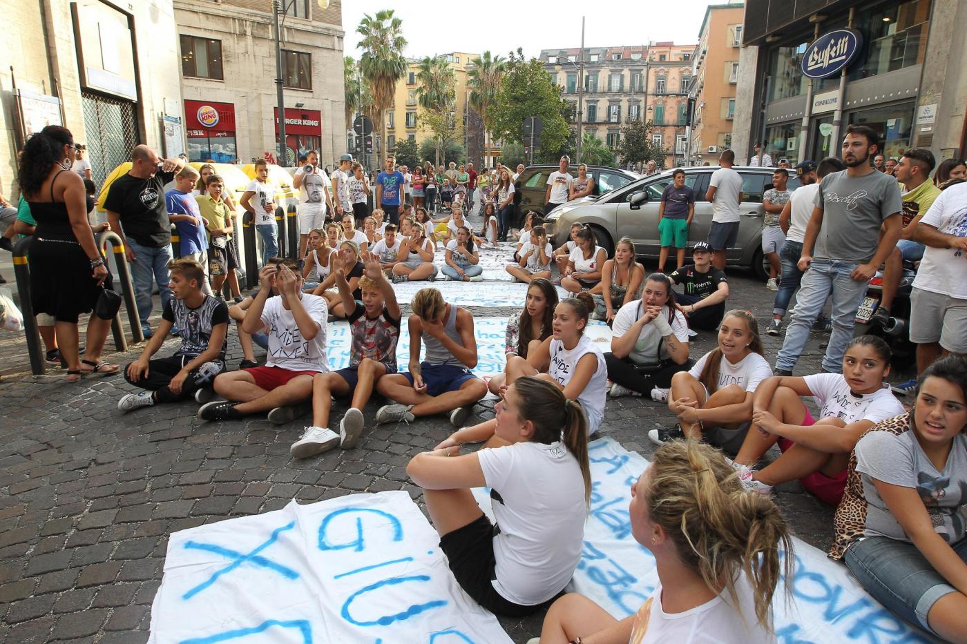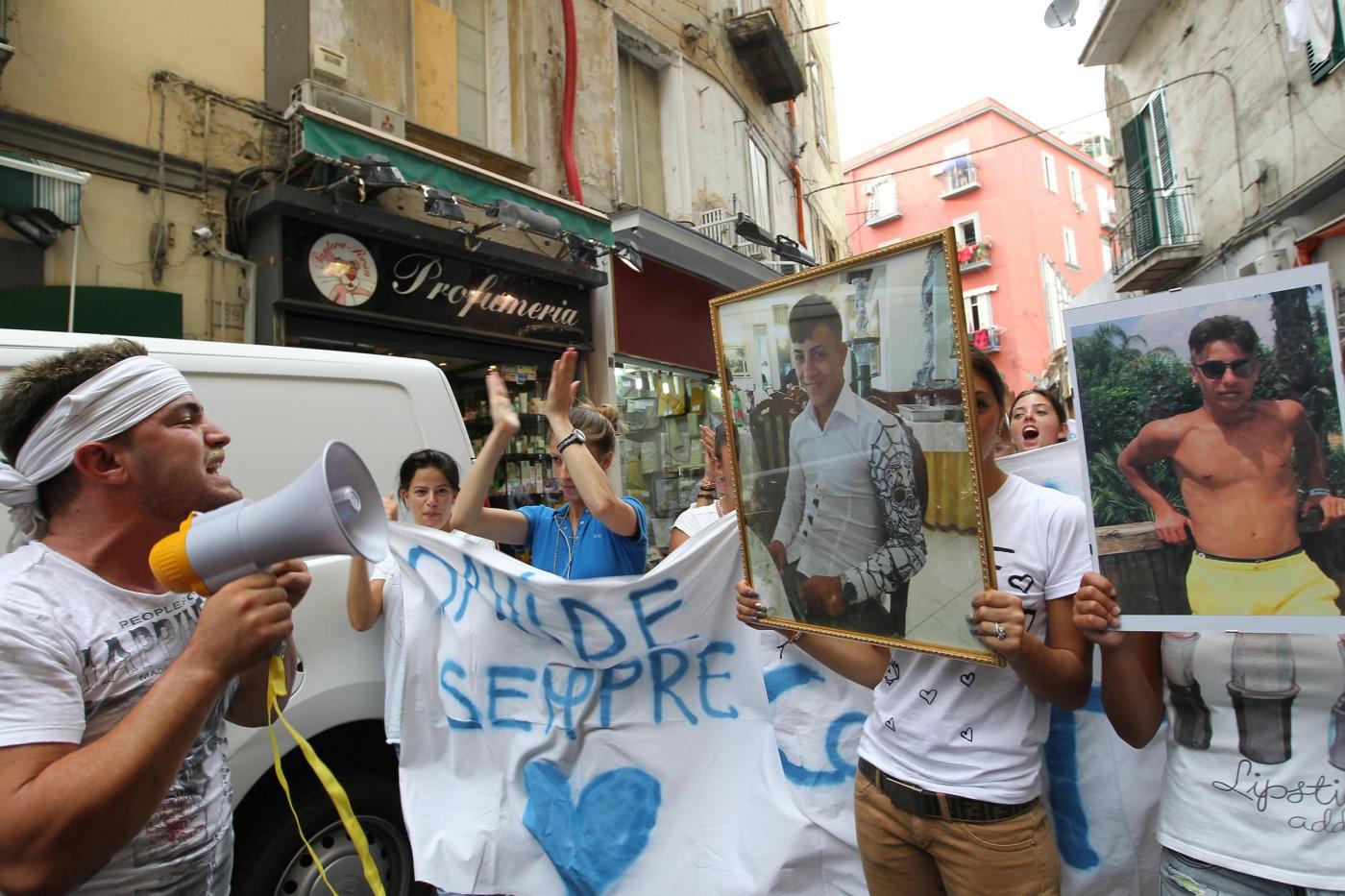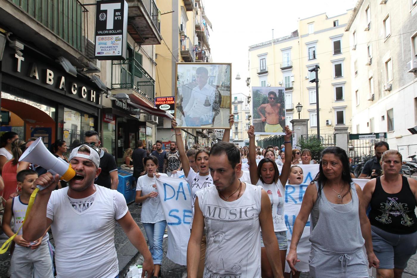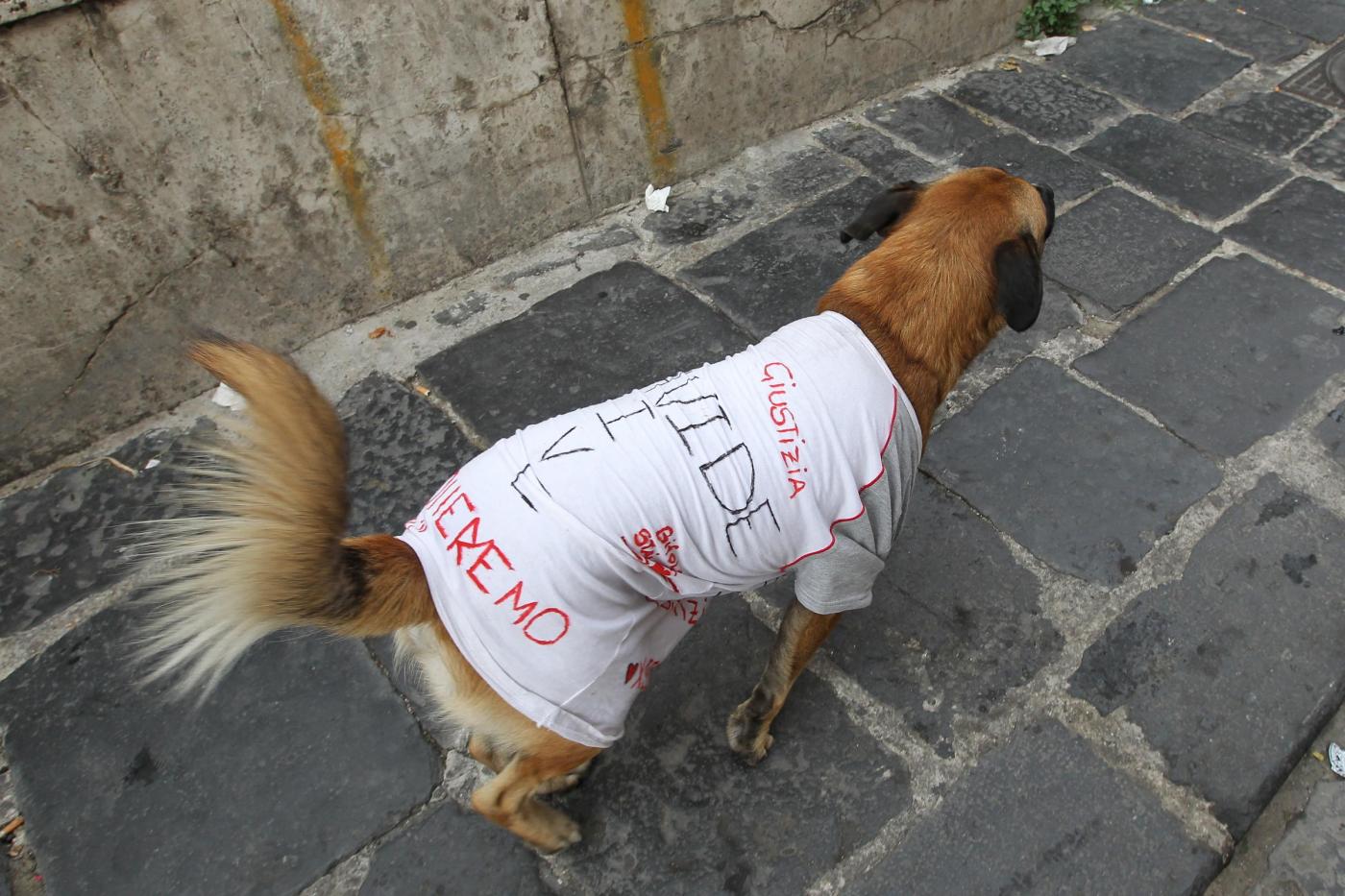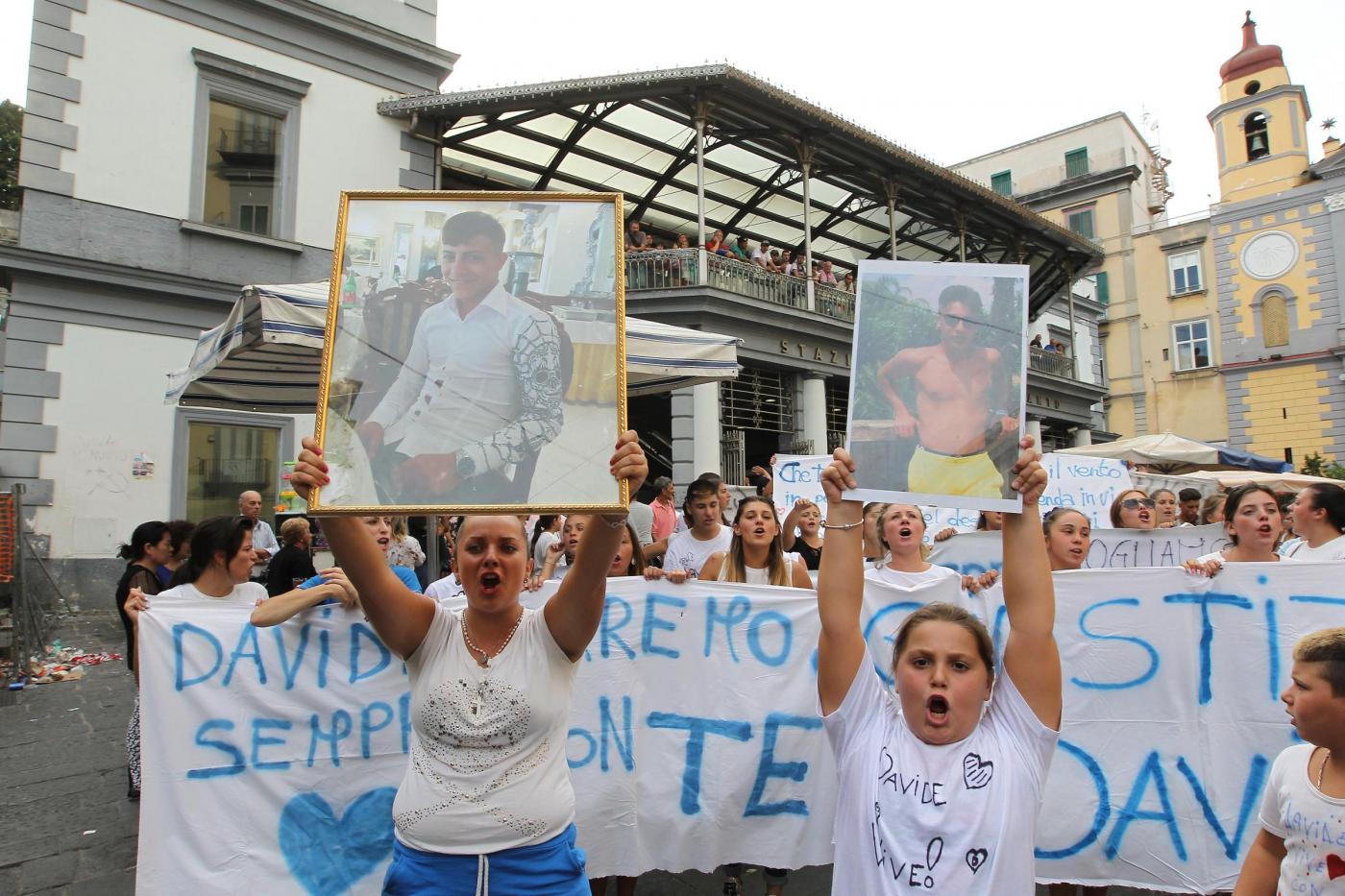 “Un solo colpo e non è accidentale, lo Stato è il vero criminale”, riprendono a cantare i ragazzi, prima della chiusura del corteo e del presidio davanti alla chiesa del GesùNuovo. Durante il corteo, anche a un cane che segue è stata fatta indossare una maglietta bianca con la scritta ‘Davide vive’.
