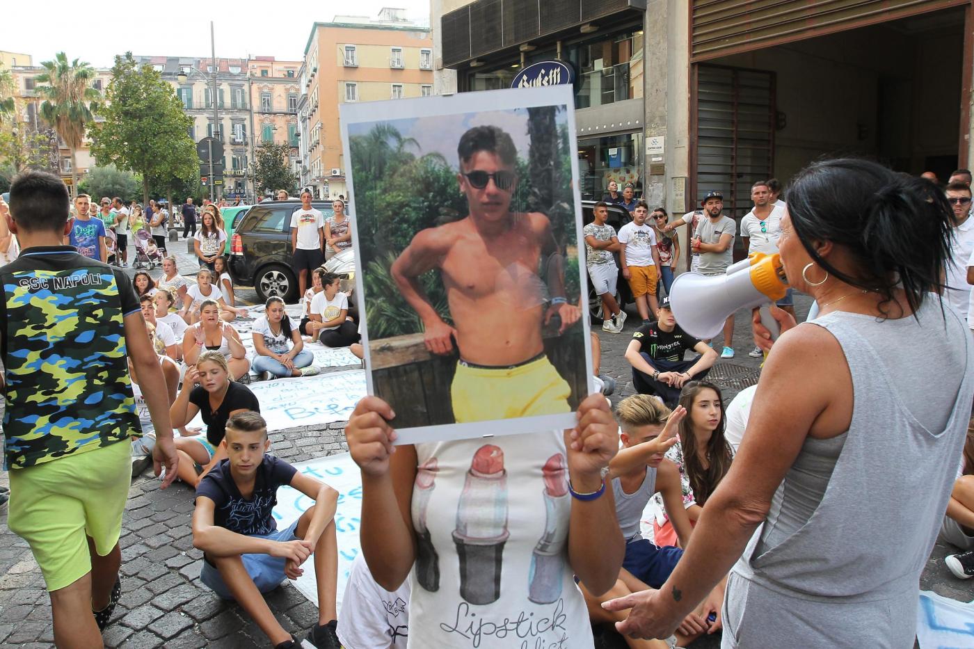 Tutti seduti intorno agli striscioni a chiedere ancora giustizia e a pregare per “un bambino ucciso dallo Stato”. Termina così in Piazza del Gesù il corteo partito dal rione Traiano per Davide Bifolco. Una manifestazione pacifica che ha raggiunto il centro di Napoli per chiedere la mobilitazione di tutta la città. “Scendete per strada”, hanno urlato più volte i manifestanti all’uscita dalla stazione di Montesanto della Circumflegrea.