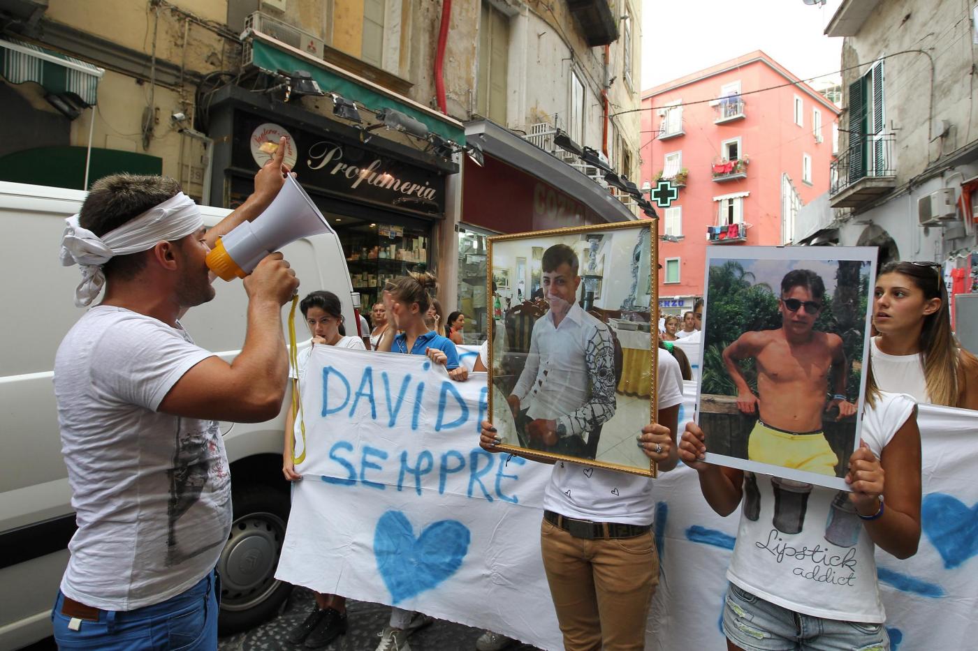 Il cugino di Davide, Gianni, si rivolge prima a lui invocando giustizia, poi chiede di “avere il carabiniere per un’ora”. L’ufficiale risponde che “questa non è giustizia”, che “ad accertare la verità ci penseranno i magistrati” e che “tutti noi siamo vicini alla famiglia nel dolore”. Prima di arrivare a Piazza del Gesù i manifestanti urlano “vergogna” passando davanti alla Questura, mentre a pochi metri di distanza il laboratorio occupato Ska espone uno striscione con la scritta ‘Davide ucciso a 17 anni, basta Rambo in divisa’.
