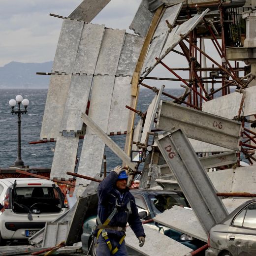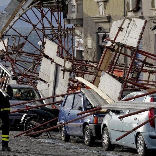 Alcuni operai si sono messi al lavoro per mettere in sicurezza la zona in via Consolvo, invece, alcune lamiere sono finite su alcune autovetture parcheggiate. Il giorno prima, sempre a Napoli, un muro era crollato in via Croce Rossa, nel quartiere Chiaia, travolgendo otto auto che erano parcheggiate in strada. Anche in questo caso, fortunatamente, nessuna persona è rimasta coinvolta. Foto Ansa.