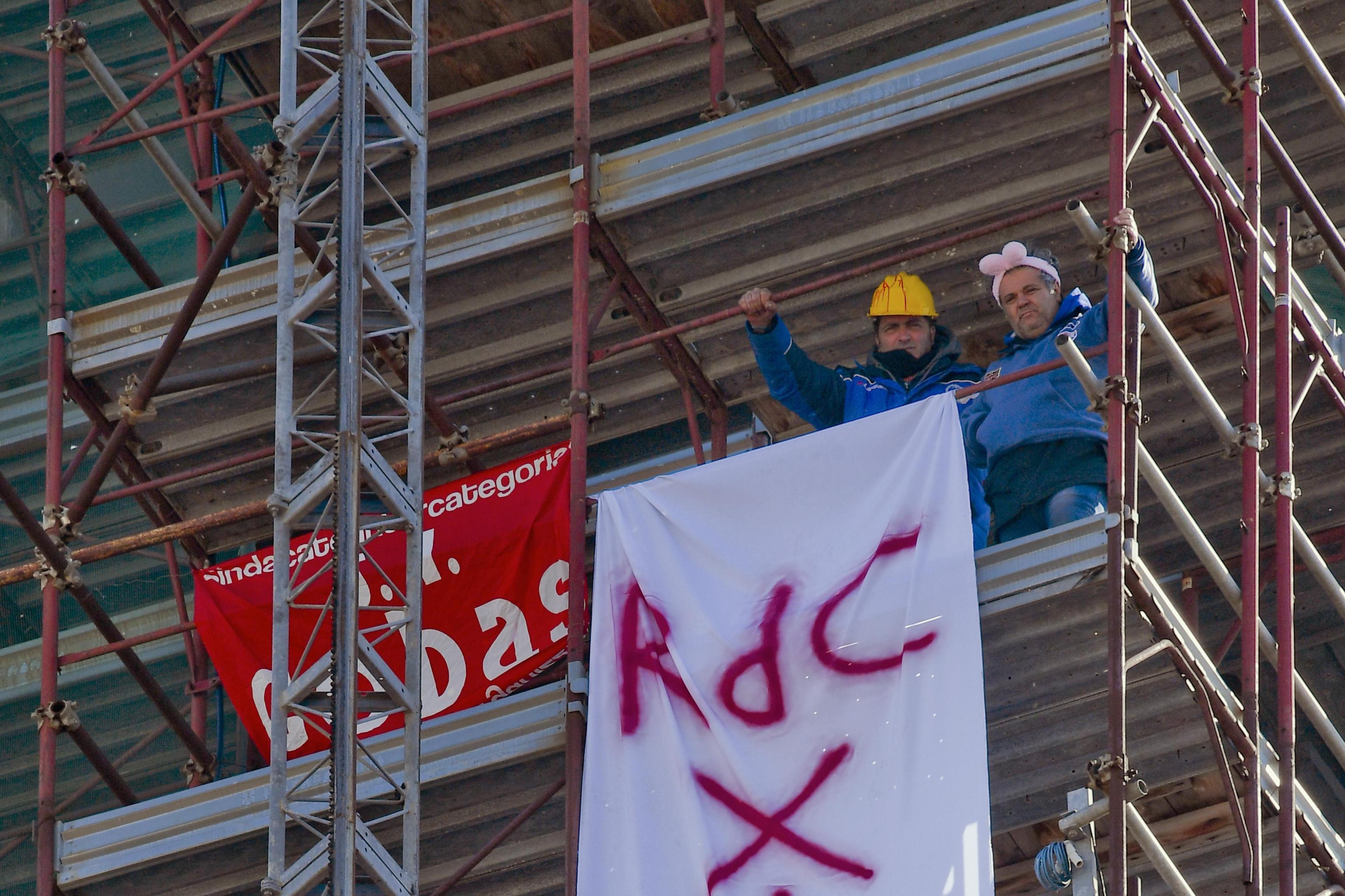 NAPOLI – Hanno portato con loro sul campanile, anche un paio di orecchie da coniglietto, i due ex operai Fca di Pomigliano, dalla notte tra venerdì 19 e sabato 20 sul campanile della Chiesa del Carmine a Napoli, per protestare contro la mancata concessione del reddito di cittadinanza.