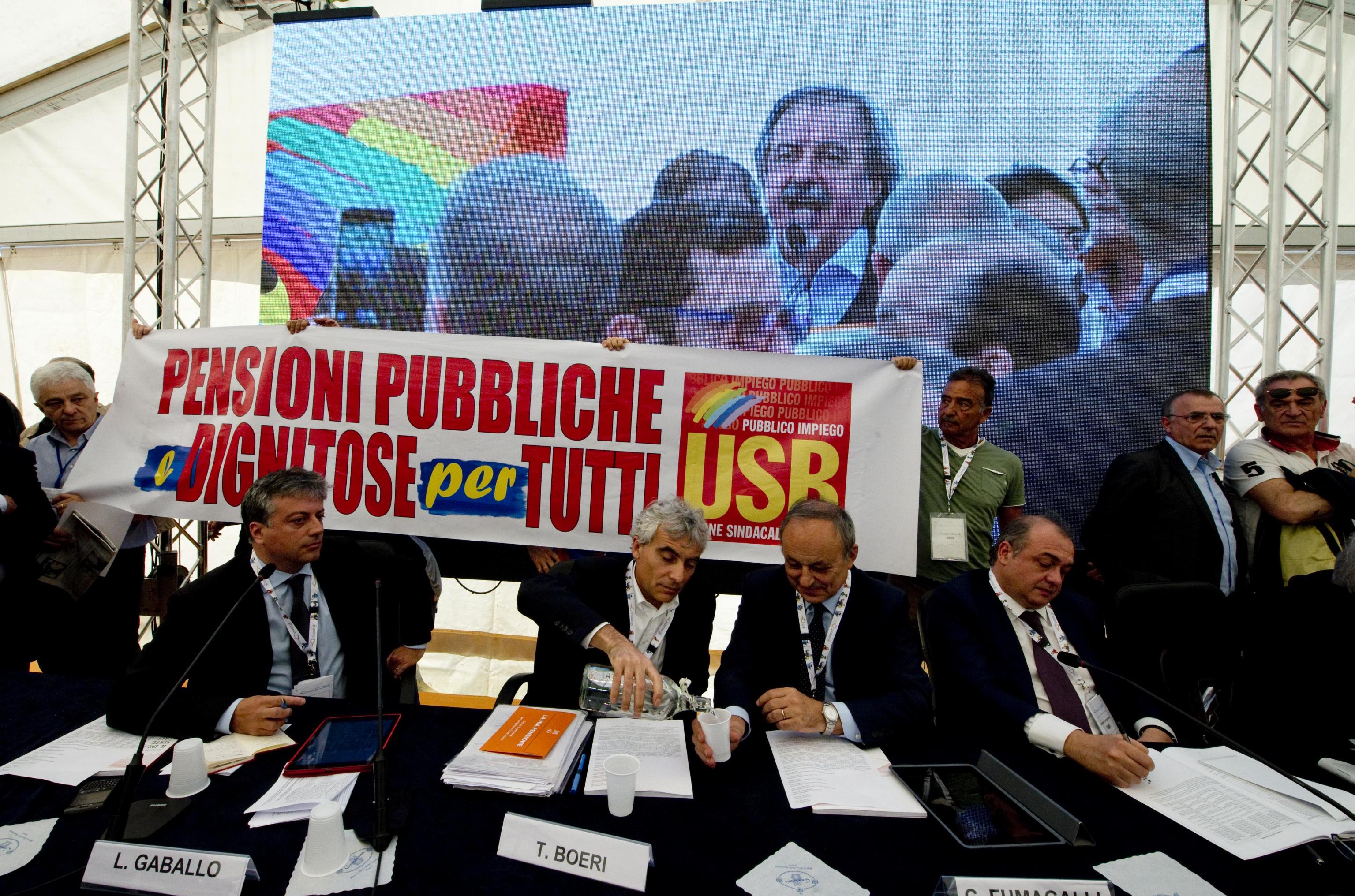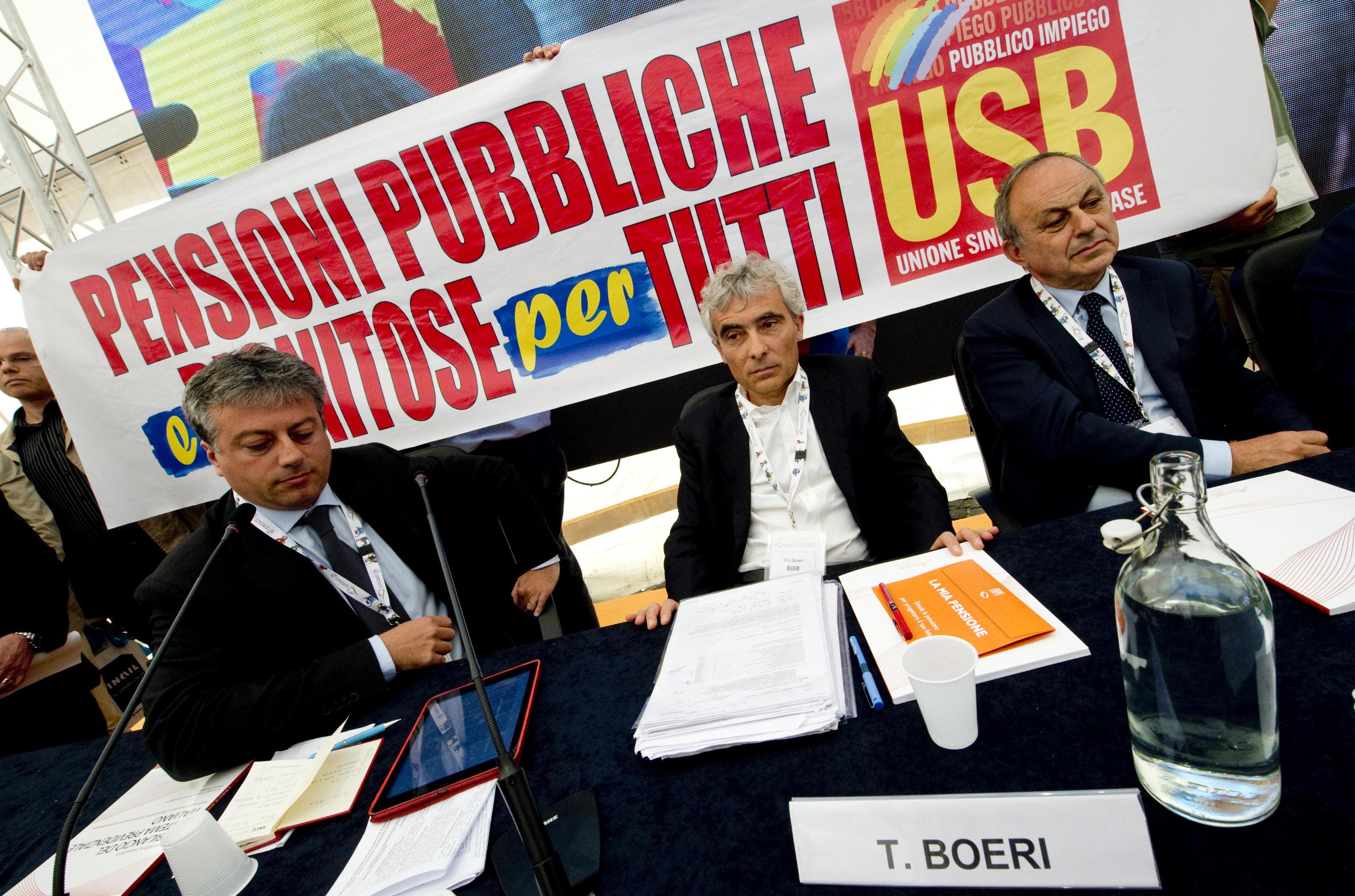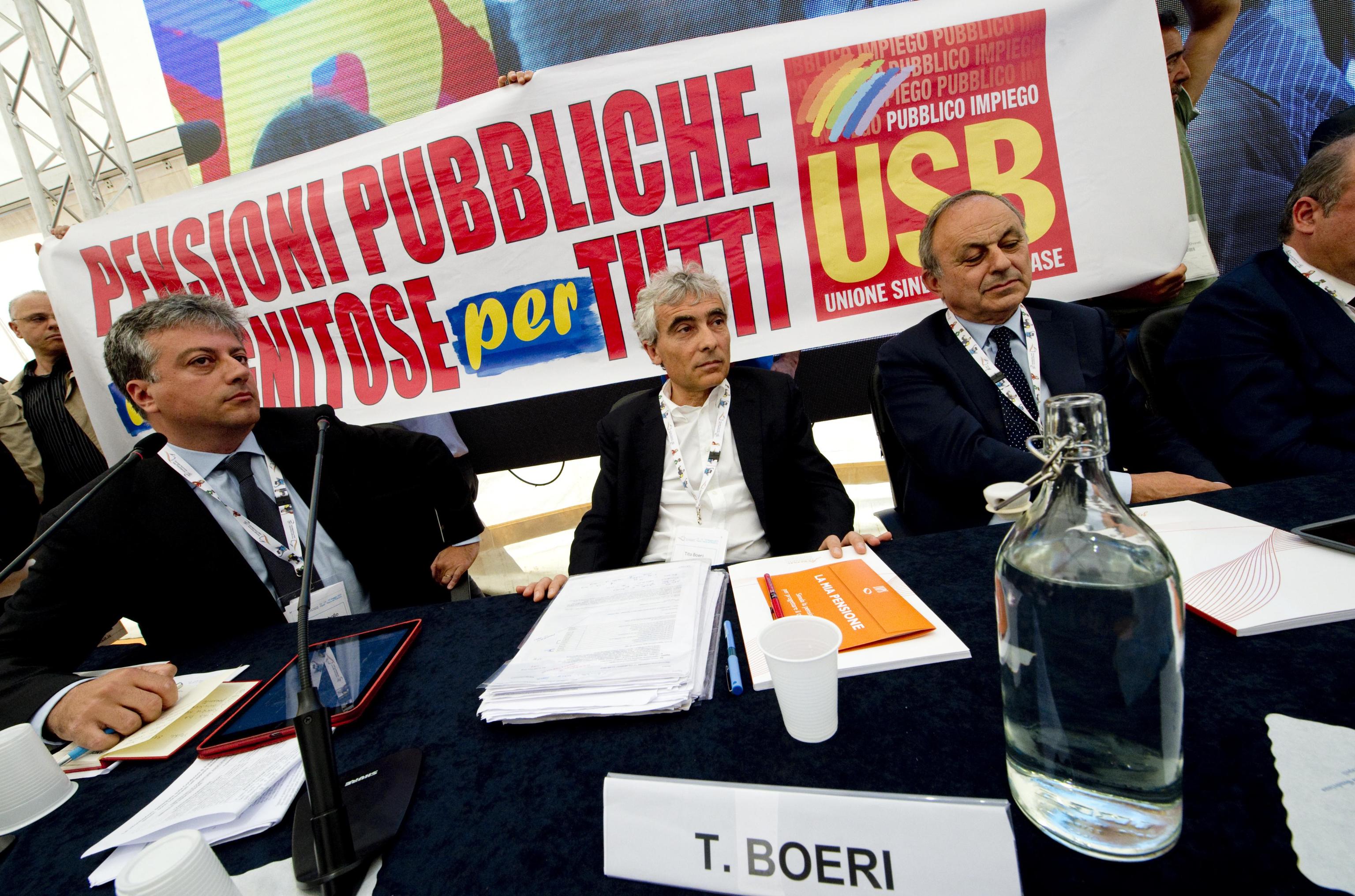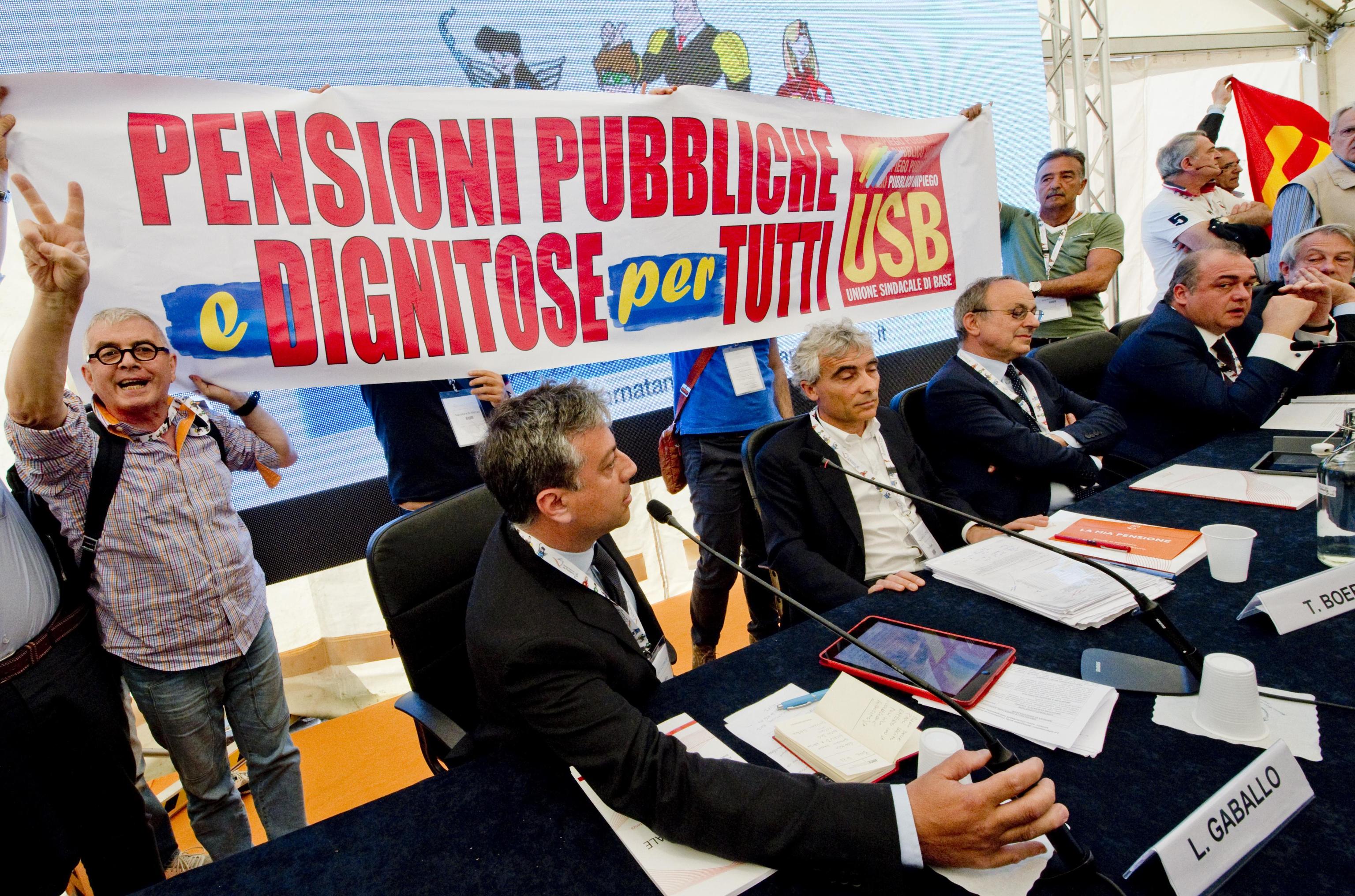 NAPOLI, 12 MAG – Ressa e spintoni hanno interrotto la quinta edizione della Giornata Nazionale della Previdenza in corso a Napoli. Una dozzina di appartenenti all’Usb pubblico impiego ha raggiunto il tavolo con il presidente dell’Inps Boeri e il ministro Poletti, chiedendo di poter parlare. L’intervento della sicurezza ha determinato qualche momento di tensione, con strattoni e spintoni. Alla fine i lavoratori hanno srotolato uno striscione con la scritta ‘pensioni pubbliche dignitose per tutti’ e un loro rappresentante è intervenuto al microfono.