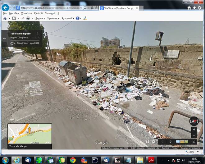 NAPOLI – Il Mattino mostra alcune immagini che Google Maps ha memorizzato sulla sua incancellabile memoria che raccontano alcune bruttezze ed illegalità del capoluogo campano. Il servizio fornito da Google serve a mostrare le strade e i vicoli di moltissime città del mondo. Il servizio permette alle persone di percorrere queste strade con le frecce. Google Maps racconta Napoli attraverso scatti realizzati un giorno qualunque e si commentano da soli. Scrive Il Mattino che comunque “Google mostra anche centinaia di bellezze e migliaia di centauri che il casco lo indossano” ma purtroppo la città è anche quello che si vede in queste immagini