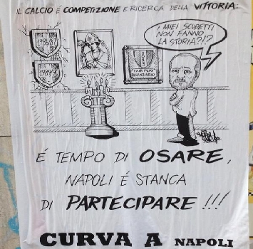 “E’ tempo di osare, Napoli è stanca di partecipare”, è il messaggio rivolto dalla curva A al patron azzurro.