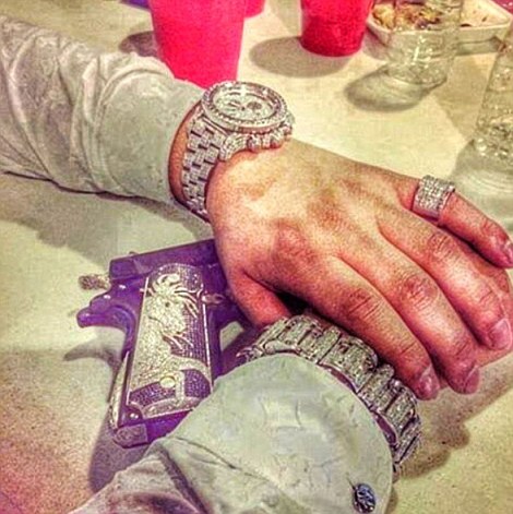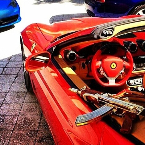 Altre foto mostrano scarpe ingioiellate e ragazzi alla guida di Bentley o Ferrari. Alcuni scatti mostrano invece il lato più sanguinoso delle bande come quella caricata sul web da #narcoofficial che mostra una macchina della polizia federale con diversi fori di proiettile, a seguito di una sparatoria tra gli agenti e il cartello di Sinaloa. Nella didascalia sotto si legge: “Ah ah ah, non è successo niente qui”.