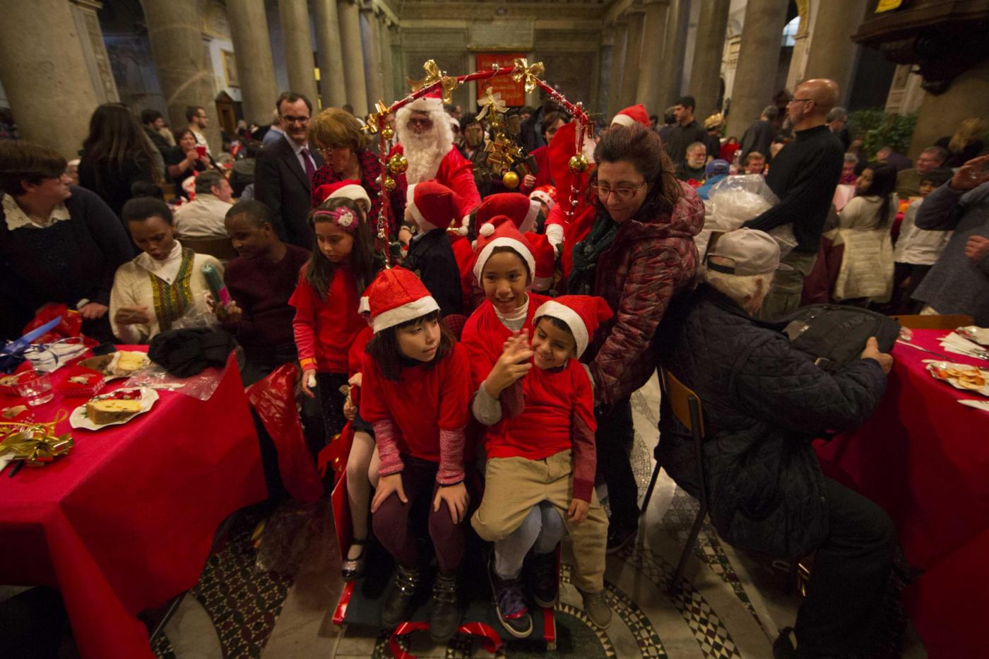 Pranzo di Natale per i poveri organizzato dalla Comunità di Sant’Egidio a Santa Maria in Trastevere