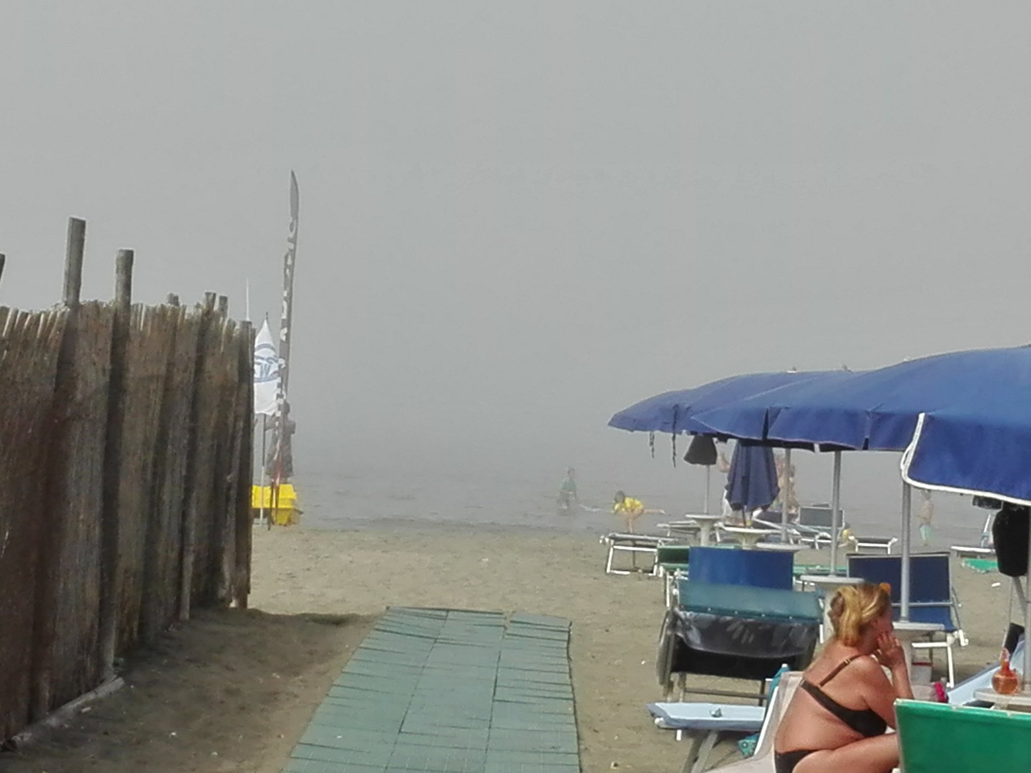 Emanuele Rossi sul quotidiano Il Messaggero scrive che i fitti banchi di nebbia hanno oscurato il sole, dando un aspetto davvero surreale alle spiagge affollate dai turisti:
