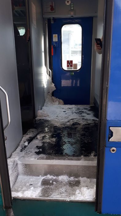 “Non bastava la soppressione del 50 per cento dei treni regionali e ritardi biblici su molti dei convogli in servizio. Questa mattina il treno RV 2321 proveniente da Ancona e diretto a Roma Termini con un ritardo ad Orte di 75 minuti, si presentava con due carrozze completamente ghiacciate e con presenza di neve all’interno dei vagoni. Altre carrozze, più fortunate, non avevano neve all’interno ma il riscaldamento non riusciva a portare la temperatura interna a valori accettabili. Abbiamo viaggiato con cappello e cappuccio. I viaggiatori hanno segnalato anche pericolose formazioni di ghiaccio in prossimità dei passaggi di intercomunicazione tra un vagone e l’altro”
