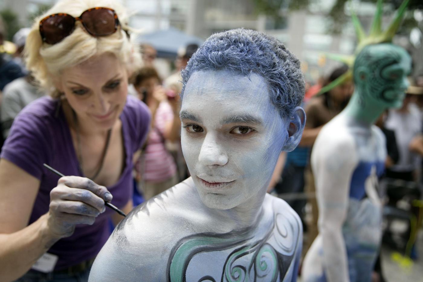 NEW YORK – Hanno offerto il loro corpo come una tavolozza e in tanti si sono dati appuntamento al Columbus Circle di Central Park a New York per il “Body Painting Day”, il primo raduno mondiale di Body painting.
