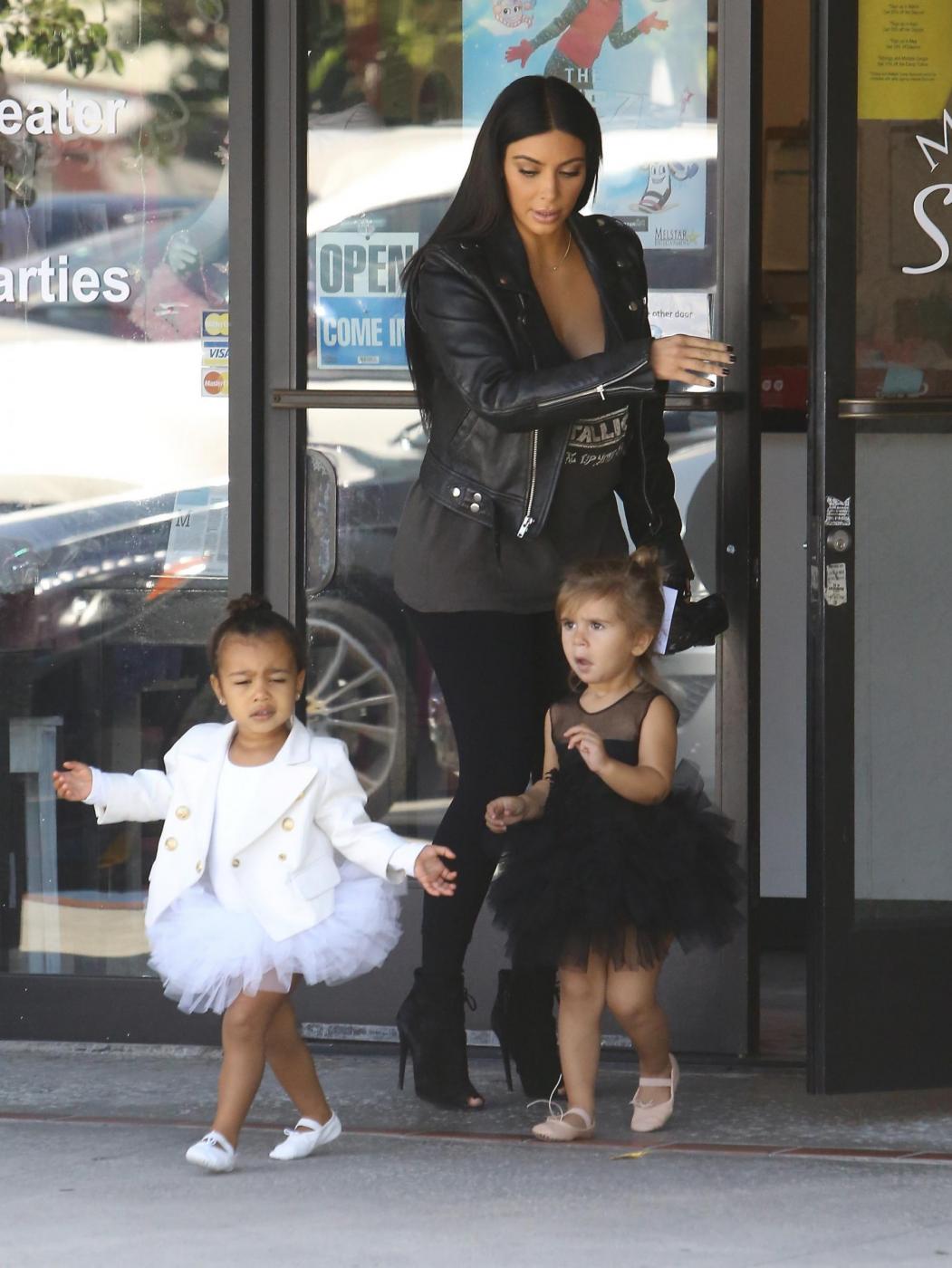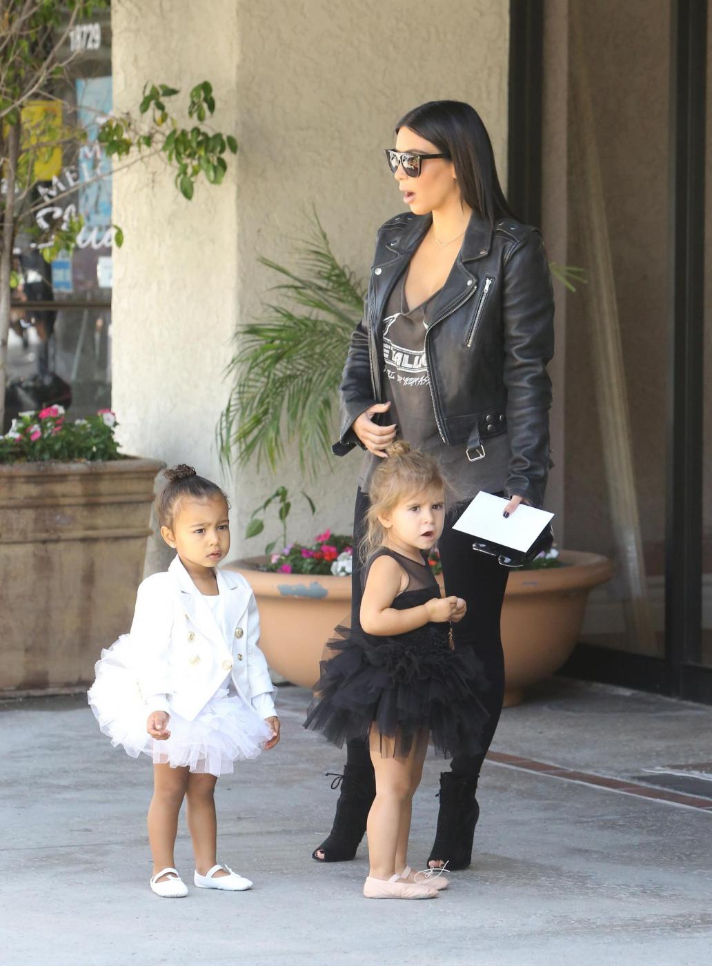 LOS ANGELES – Kim e Kourtney Kardashian tornano ad attirare le attenzioni dei fotografi, ma questa volta non sono le loro forme da capogiro o i look originali a richiamare i paparazzi, bensì le due figliolette, North e Penelope. Le due tenere cuginette vanno infatti a danza assieme, accompagnate dalle rispettive mamme e si sfidano a colpi di tutù. Chi è la più bella e la più brava? e fanno a gare per decretare anche chi è la più dolce.