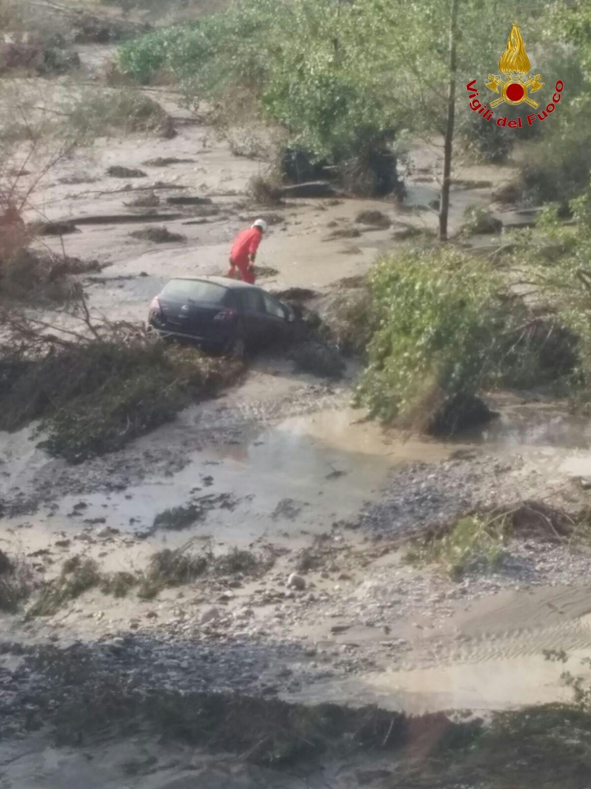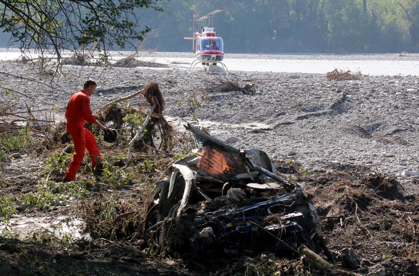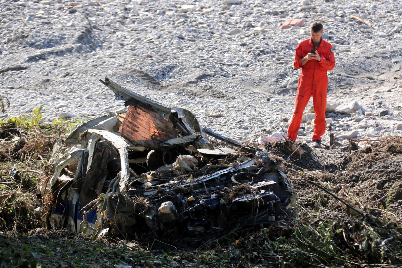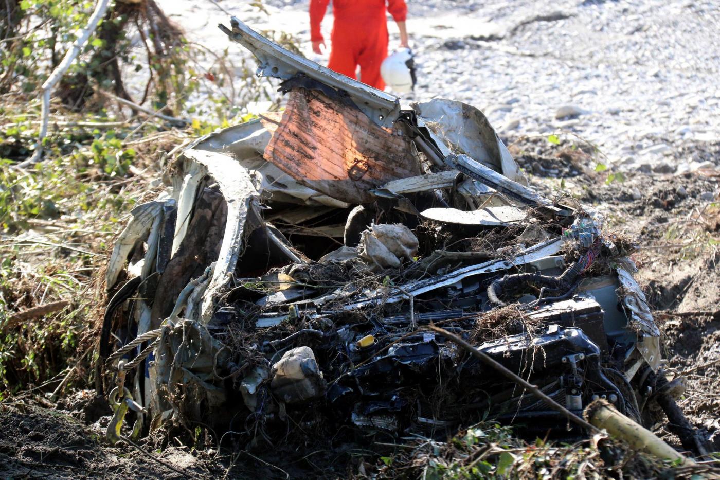 Le foto LaPresse della carcassa dell’auto di Luigi Albertelli, la guardia giurata di 56 anni morta per la furia dell’acqua: