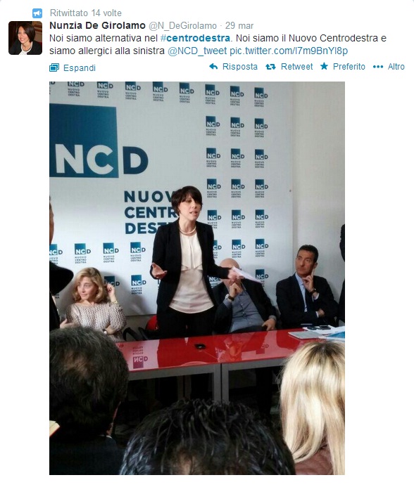 Su Twitter la De Girolamo scrive: