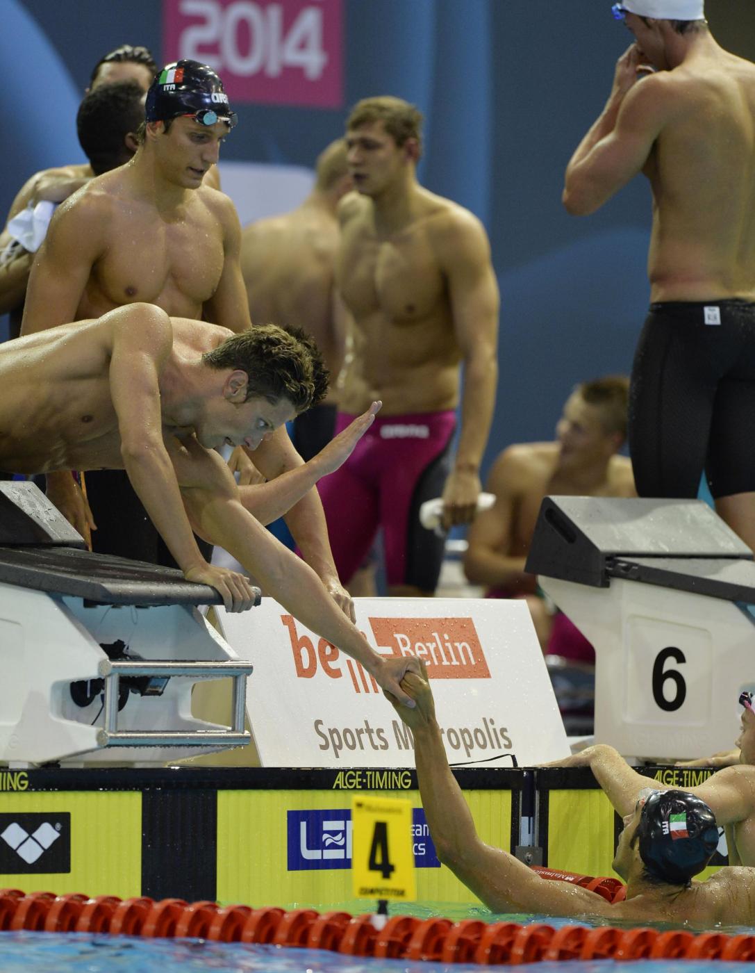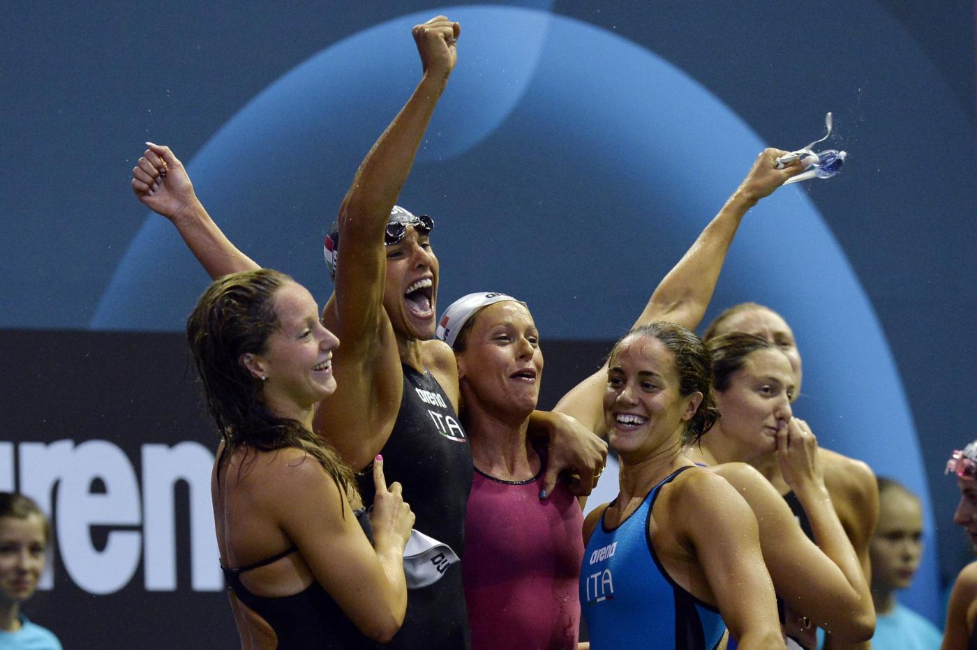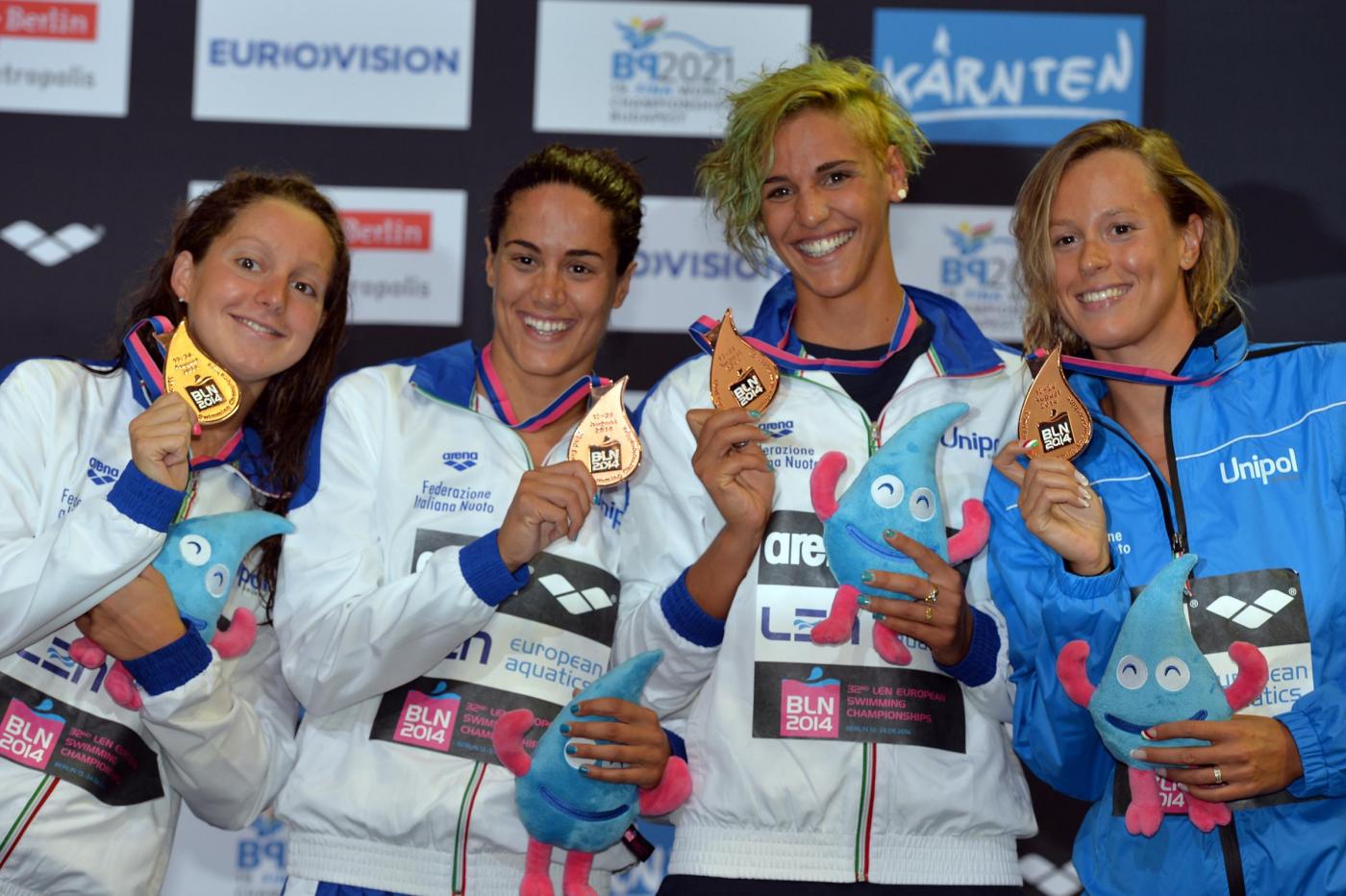 Da segnalare la clamorosa squalifica della Danimarca, prima al traguardo e che ha conseguito proprio all’Italia di salire sul podio. “E’ sempre bello vedere una staffetta italiana che sale sul podio, per me è sempre stato più difficile e siamo molto contente”, ha detto Federica Pellegrini dopo la vittoria della medaglia d’argento. Una Pellegrini appara raggiante e concentrata in vista degli impegni individuali che la vedranno protagonista. “Farò i 200 e i 400 poi questi Europei segneranno un bilancio soprattutto per vedere se vale la pena portare avanti i 400”, ha spiegato la campionessa veneta.