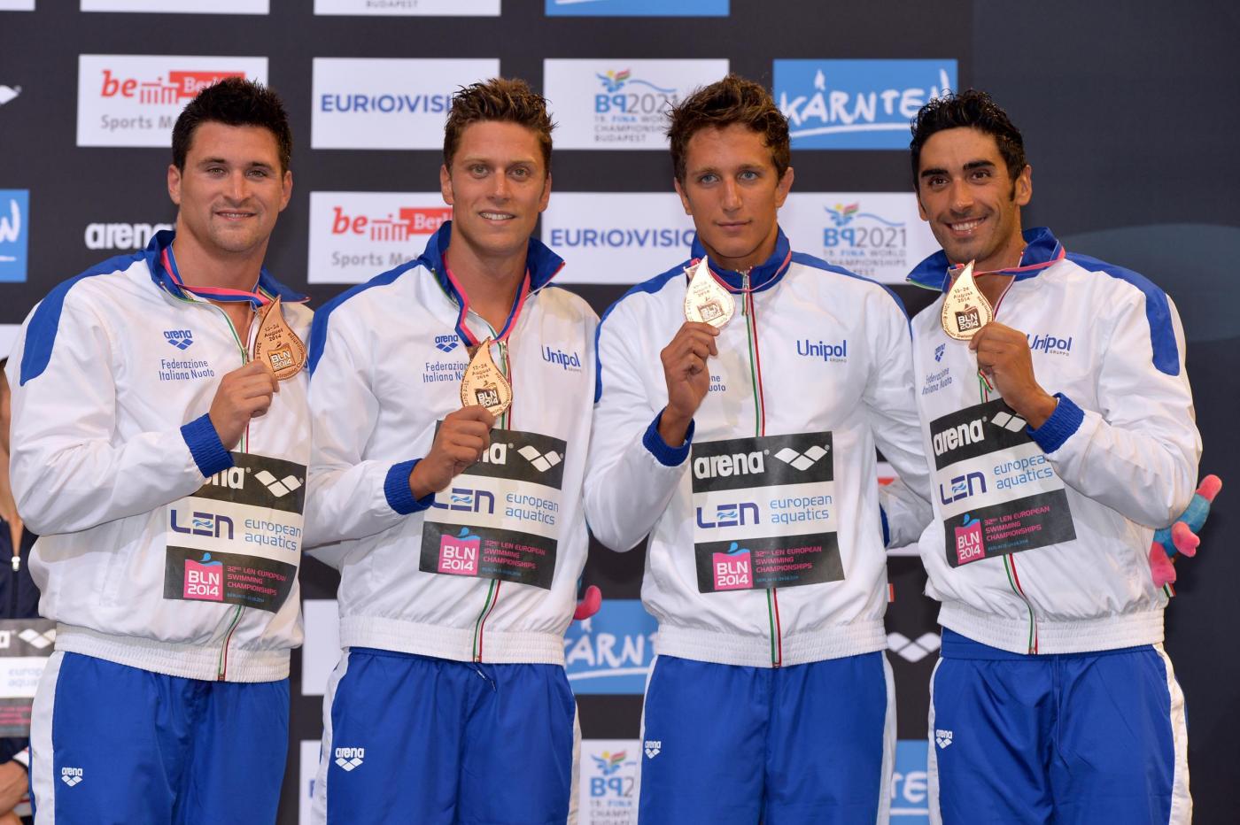 L’Italia ha vinto poi la medaglia di bronzo nella staffetta 4×100 maschile. Gli azzurri Luca Dotto, Marco Orsi, Luca Leonardi e Filippo Magnini hanno chiuso con il tempo di 3’12″78. Medaglia d’oro alla Francia con il tempo di 3’11″64, record dei campionato. Argento per la Russia in 3’12″67.