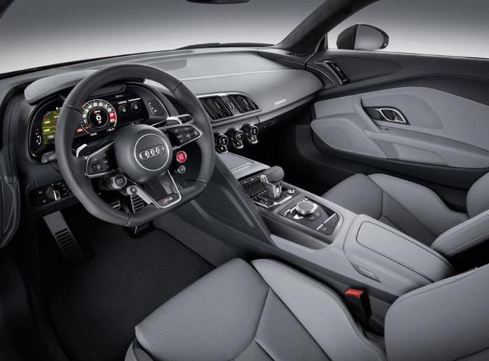 Il pilota della nuova Audi R8 può così decidere con l’Audi Drive Select di sfruttare nella modalità Dynamic (o nella Plus con il pulsante Performance sul volante) gli elementi ‘racing’ come il cambio a doppia frizione S Tronic a sette rapporti dai passaggi di marcia fulminei, il differenziale meccanico autobloccante perfezionato, la nuova frizione a lamelle a regolazione elettroidraulica e la trazione integrale (ora dotata di raffreddamento attivo) che può ripartire la coppia liberamente tra gli assi arrivando fino al 100% davanti o dietro. Oppure, passando in Confort o Auto, può tranquillamente mettersi in viaggio verso l’ufficio o puntando ad una lontana destinazione turistica, certo di godere di una comodità rara in vetture da oltre 300 all’ora, di dotazioni interne (come l’Audi Virtual Cockpit con grafica 3D o i sofisticati sistemi di assistenza alla guida) e del navigatore MMI plus con MMI touch e visione del paesaggio nella mappa che sono analoghi a quelle di un’ammiraglia A8.