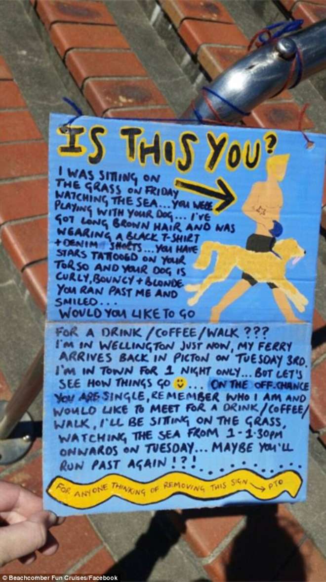 Sarah Milne รจ una donna scozzese in visita in Nuova Zelanda.Aveva visto e apprezzato un ragazzo biondo su una spiaggia e cosรฌ ha lasciato proprio lรฌ vicino un cartello chiedendo di rivedere il ragazzo in quello stesso luogo in un determinato giorno. Naturalmente ha allegato una descrizione precisa del ragazzo, compresi i tatuaggi, e un disegno fatto a mano.