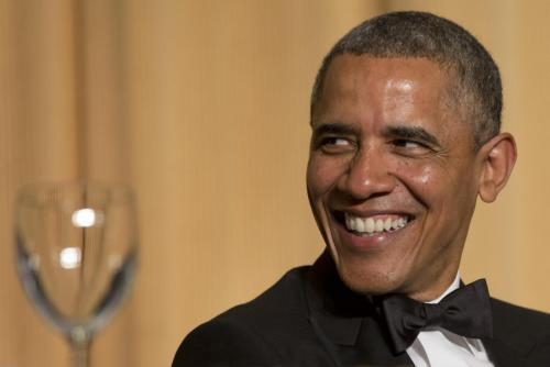 Ha preso innanzitutto in giro i repubblicani con la loro ossessione di voler abolire l’odiata Obamacare, e per aver ingaggiato dei consulenti che insegnassero ai loro futuri candidati come comportarsi con le donne. Poi è stato il turno dell’aspirante candidato alla presidenza Joe Biden, Obama ha mostrato un fotomontaggio in cui il vicepresidente tiene in mano una scarpa: l’altra era quella di recente tirata a Hillary Clinton durante un convegno.
