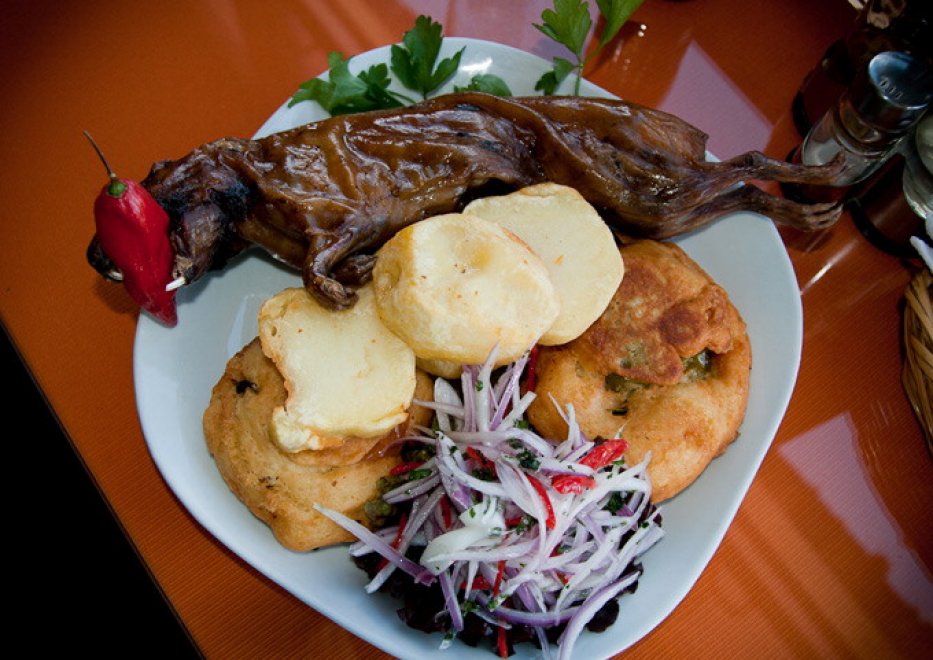 Cuy – Perù, Ecuador, Colombia. Normalmente, il “cuy” (porcellino d’india) viene cucinato fritto o stufato con le verdure”