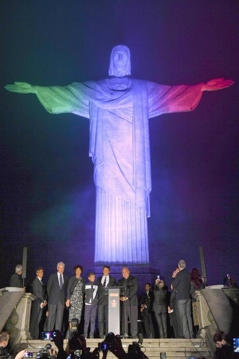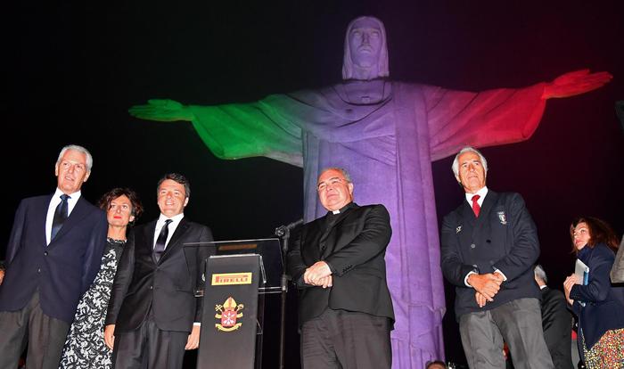 Alla cerimonia hanno partecipato l’arcivescovo della città carioca Cardinale Tempesta, il ceo di Pirelli Marco Tronchetti Provera, il presidente del Coni Giovanni Malagò, il presidente del comitato promotore di Roma 2024 Luca Cordero di Montezemolo. Renzi, con la moglie Agnese e uno dei figli, ha presieduto la cerimonia al Corcovado prima di inaugurare la sede della delegazione azzurra a Rio, uno spettacolare circolo sportivo a picco sull’Oceano.