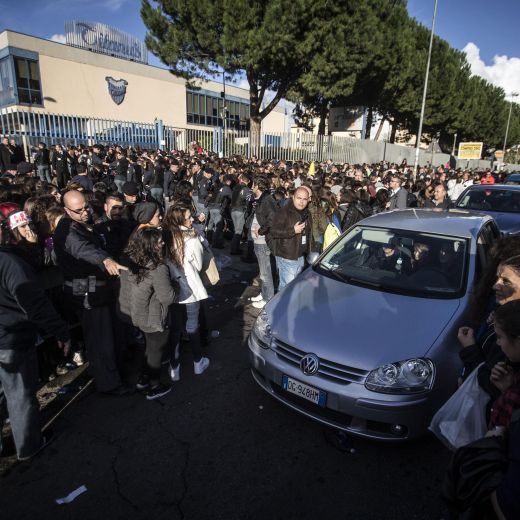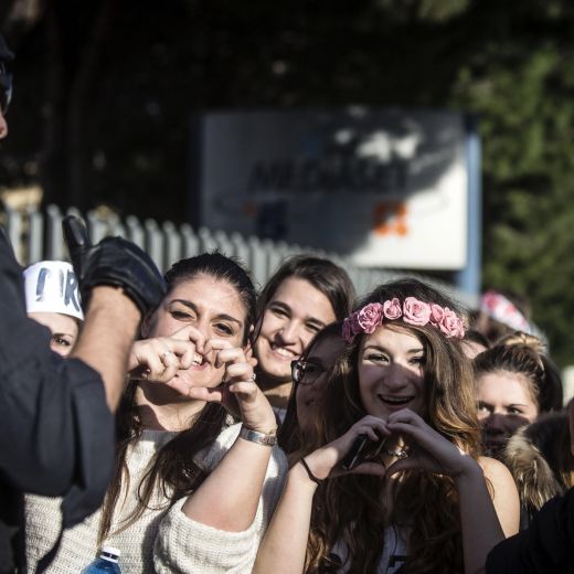 Poco prima dell’inizio della registrazione per Mediaset, prevista per le 16, all’esterno degli studios c’erano circa 2-3.000 persone in attesa della band. Traffico impazzito sulla consolare. Per la ressa e la lunga attesa qualche fan si è sentita male.