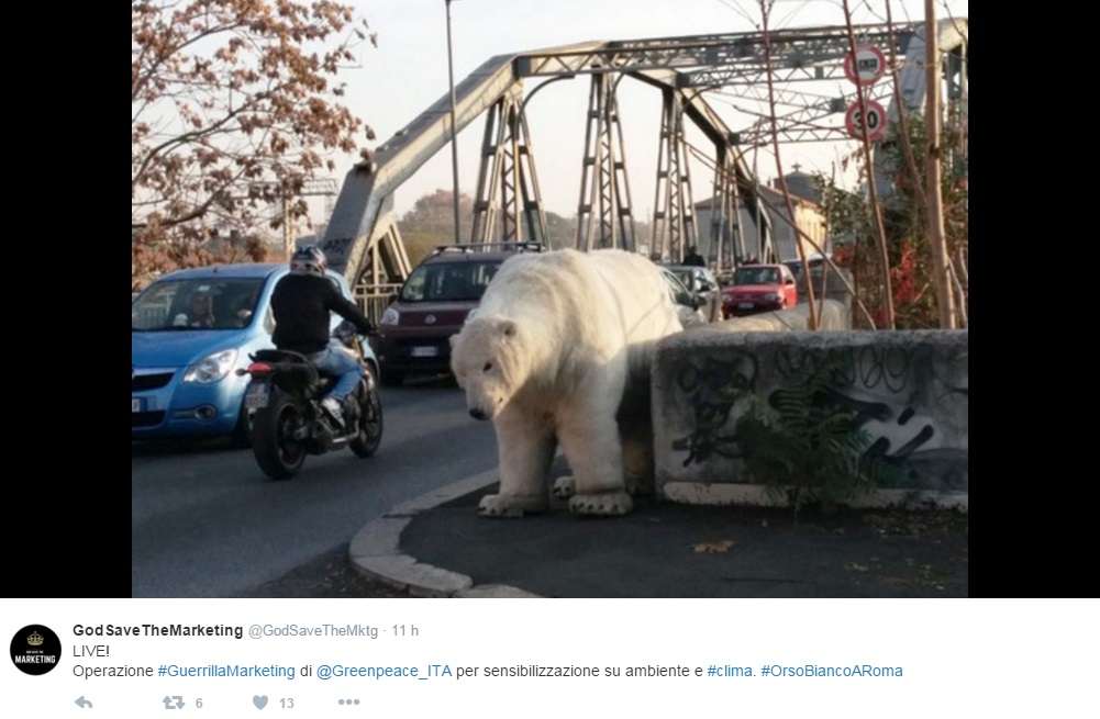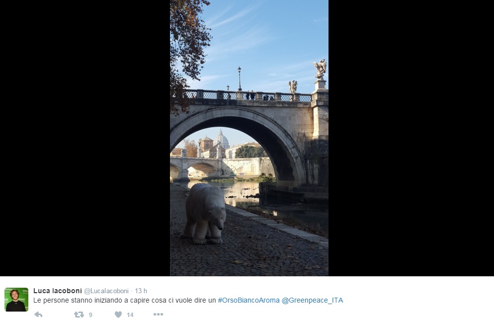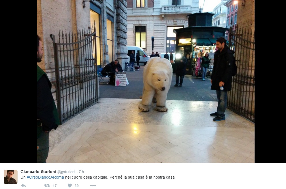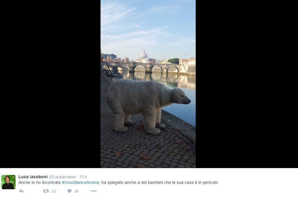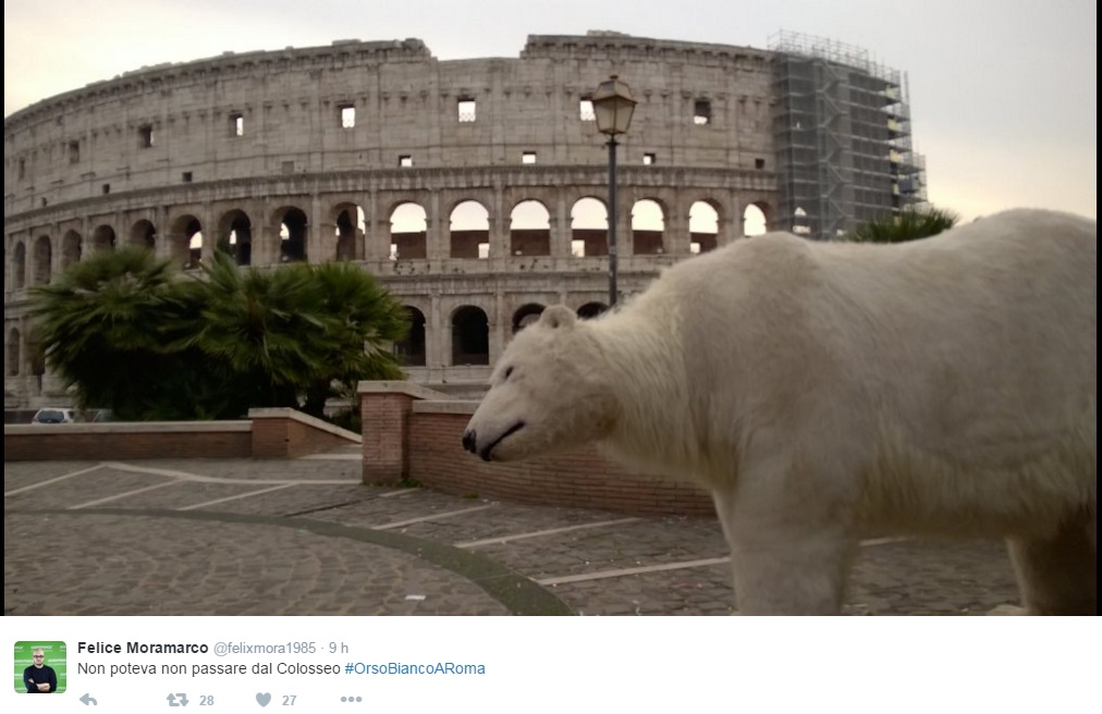 L’associazione ha lanciato sui social l’hashtag #OrsoBiancoaRoma, invitando gli utenti a postare foto dell’animale in giro per la Capitale.