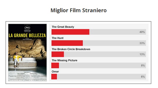 Paolo Sorrentino con la La grande bellezza è il favorito tra i film stranieri anche se con un vantaggio misero sul danese Il sospetto.