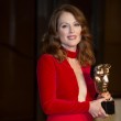 ROMA – Stando a tutte le previsioni e alla quindicina di premi vinti, dal Golden Globe al Bafta, sembra arrivato il momento agli Oscar 2015, che verranno assegnati domenica sera (in Italia in diretta su Sky Cinema Oscar HD dalle 22.50 e in contemporanea in chiaro su Cielo), di Julianne Moore, in gara per aver dato volto con incredibile intensità a un cinquantenne colpita da Alzheimer precoce in ‘Still Alice’. Non mancano, però, le avversarie di talento: Rosamund Pike, dark lady ne ‘L’amore bugiardo’; due interpreti che una statuetta l’hanno già vinta, Marion Cotillard, in corsa con ‘Due giorni, una notte’ e Reese Witherspoon con ‘Wild’, insieme all’emergente Felicity Jones per ‘La teoria del tutto’. “La più grande attrice americana vivente che non ha ancora vinto un Oscar”, così Wash Westmoreland, coregista con Richard Glatzer di Still Alice, ha definito Julianne Moore, arrivata con questa a cinque candidature: le altre le aveva avute, come non protagonista, nel 1998 per Boogie Nights e nel 2003 per ‘The hours’, e come protagonista, nel 2000 per ‘Fine di una storia’ e sempre nel 2003 per ‘Lontano dal paradiso’.