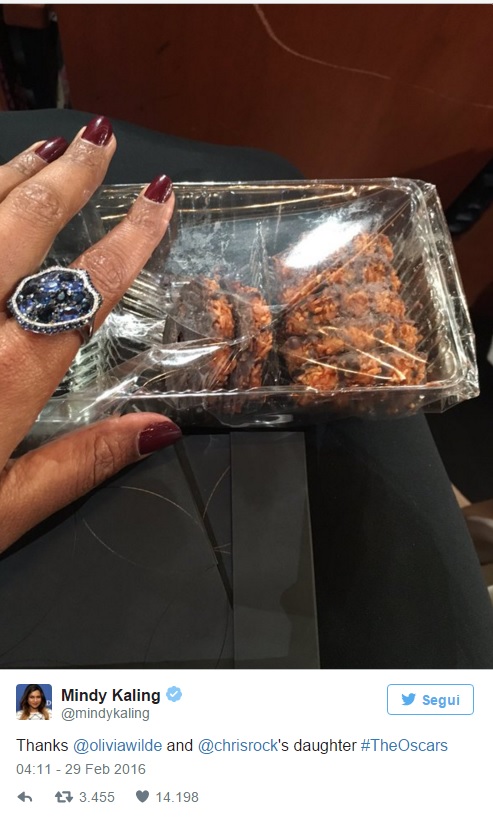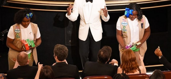 Rock non ha potuto aiutare in altro modo la figlia, dato che, invece di essere a casa, stava presentando la cerimonia a Los Angeles. E così ad un certo punto, la figlia di Rock e i suoi amici hanno cominciato ad aggirarsi per il Dolby Theatre dove si è tenuta la premiazione degli Oscar, nel tentativo di vendere i biscotti delle ragazze scout. “Voglio che mettiate le mani nei vostri portafogli milionari – ha detto Chris Rock – voglio che compriate i biscotti di mia figlia” .