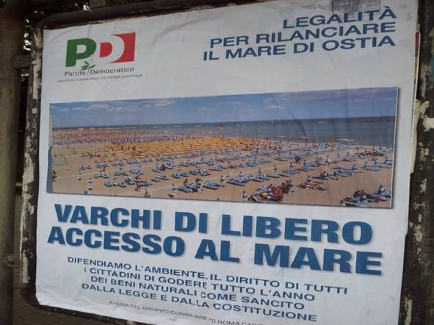 ROMA – Il Pd attacca dei manifesti a Ostia, il quartiere romano che si affaccia sul mare in cui si vede una spiaggia con degli ombrelloni. Sul poster la scritta “varchi di libero accesso al mare” che spiega il motivo dell’iniziativa.Peccato che la foto scelta non è quella di Ostia ma bensì quella di Rimini. I manifesti sono comparsi giovedì scorso ed oggi Athos De Luca, presidente della commissione Ambiente in Campidoglio e ideatore del poster che rivendica il libero accesso al mare di Roma, svela il perché della scelta: “Non è la spiaggia di Ostia quella nella foto e l’abbiamo scelta volutamente. Volevamo dare ai romani un’immagine mare e ombrelloni senza stabilimenti, e abbiamo trovato una foto del litorale Rimini”.