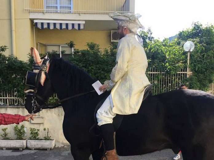 SALERNO – Si è presentato sotto casa della sua fidanzata in sella ad un destriero e vestito da principe azzurro. Così Antonio, un giovane di 20 anni, ha pensato di fare degli originalissimi auguri di buon compleanno alla sua Manuela che compiva 18 anni. E’ successo lunedì 1 maggio a Pagani, in provincia di Salerno.