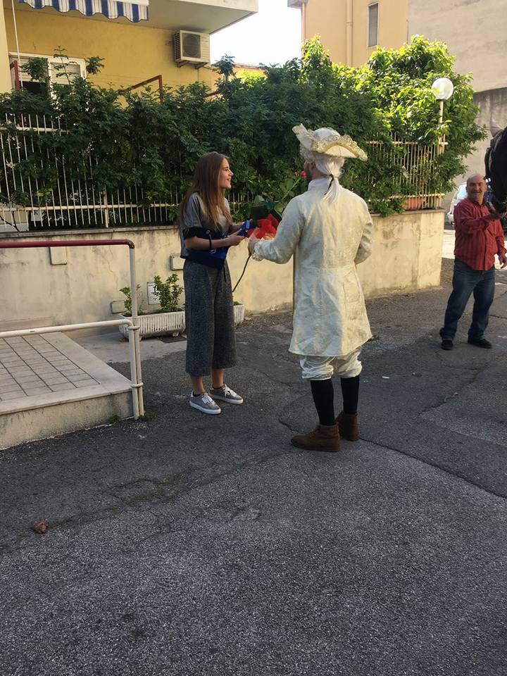 La scena del ragazzo che raggiunge al galoppo il balconcino della neomaggiorenne, con tanto di costume d’epoca ha suscitato la curiosità di molti cittadini scesi in strada per immortalare il romantico gesto. Le foto di Antonio vestito da principe azzurro e dell’incontro con la sua amata sono state pubblicate dalla pagina Facebook Un Armadio Tutto Per Sé e hanno presto fatto il giro dei media locali.