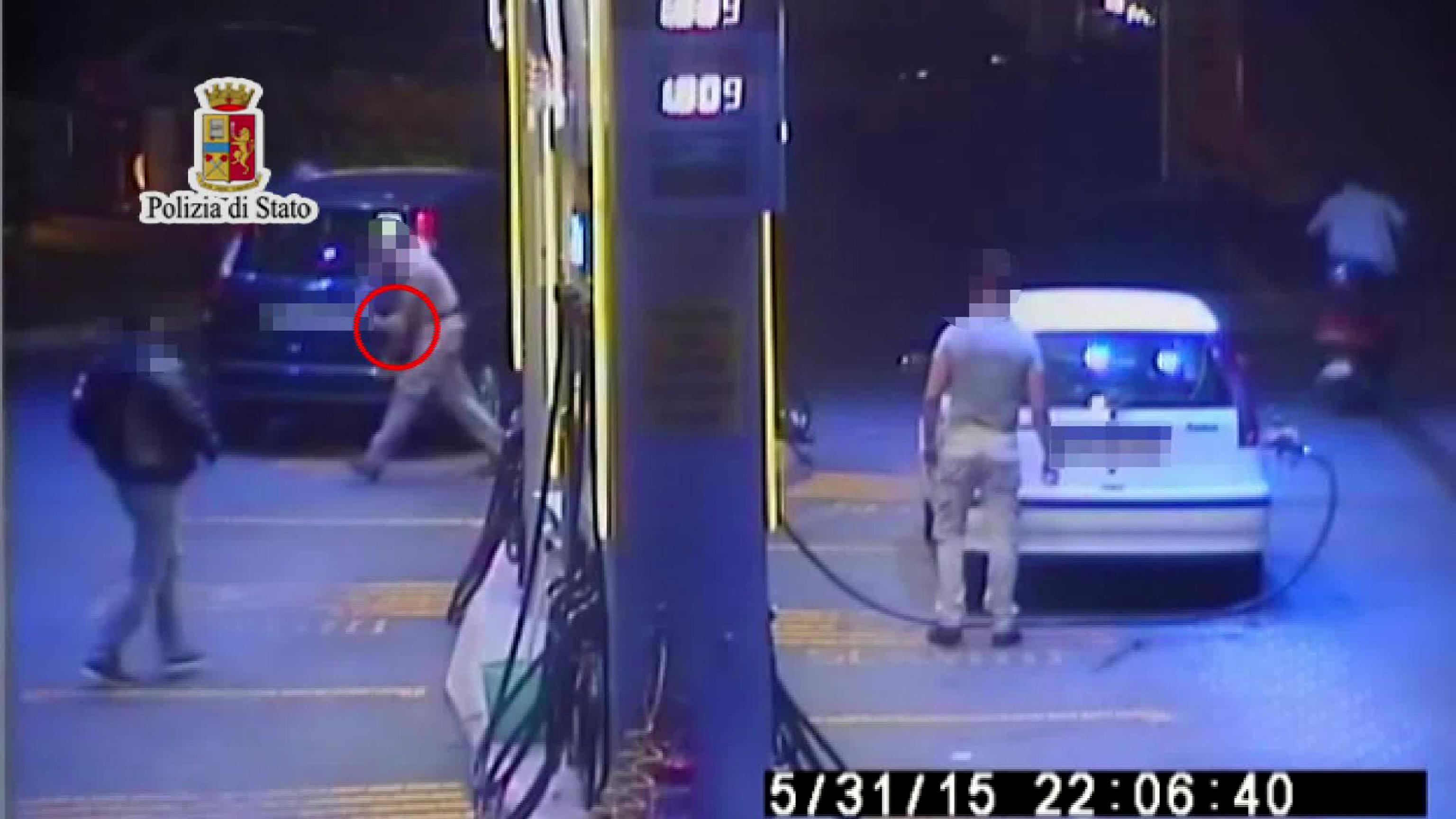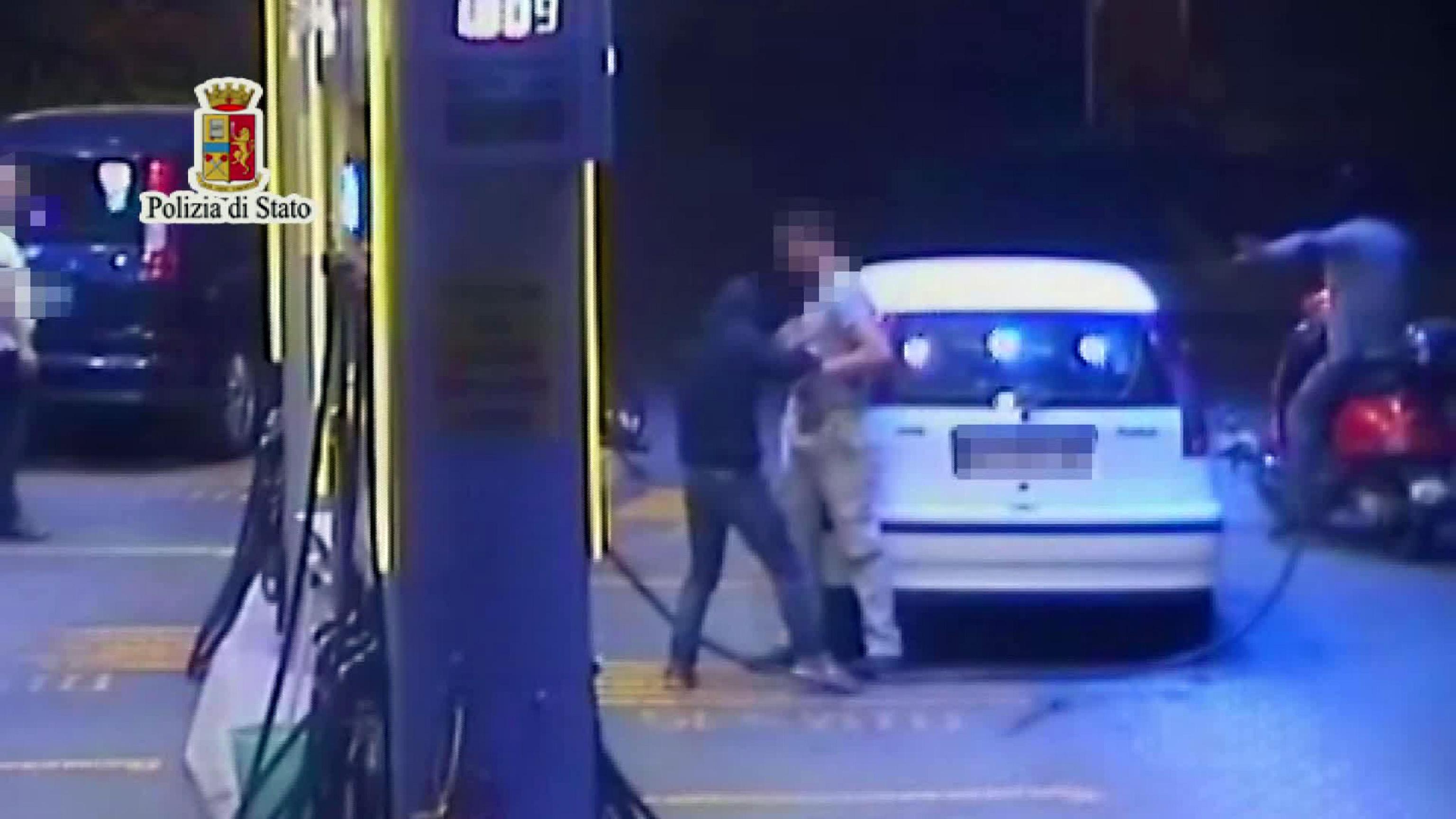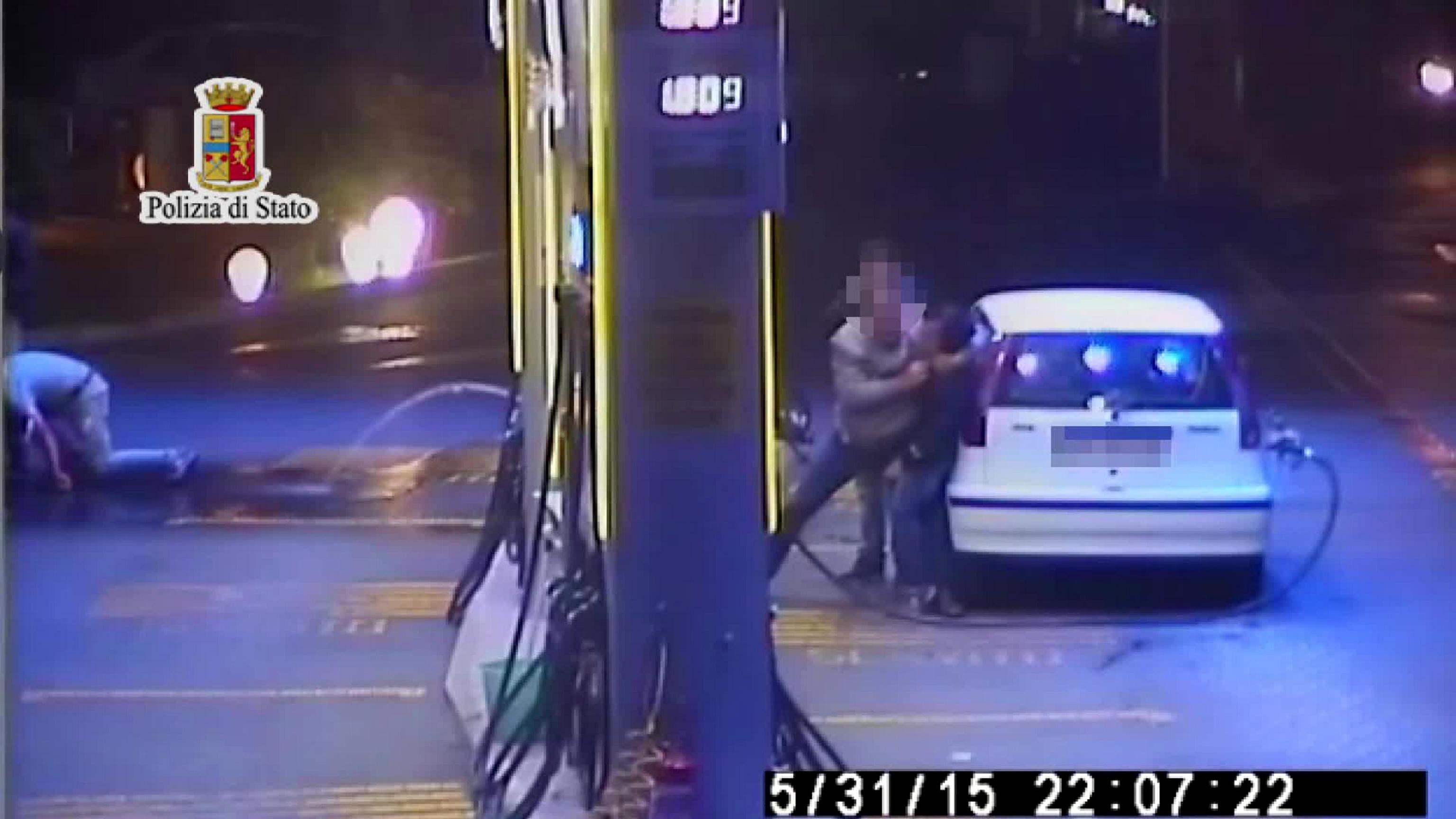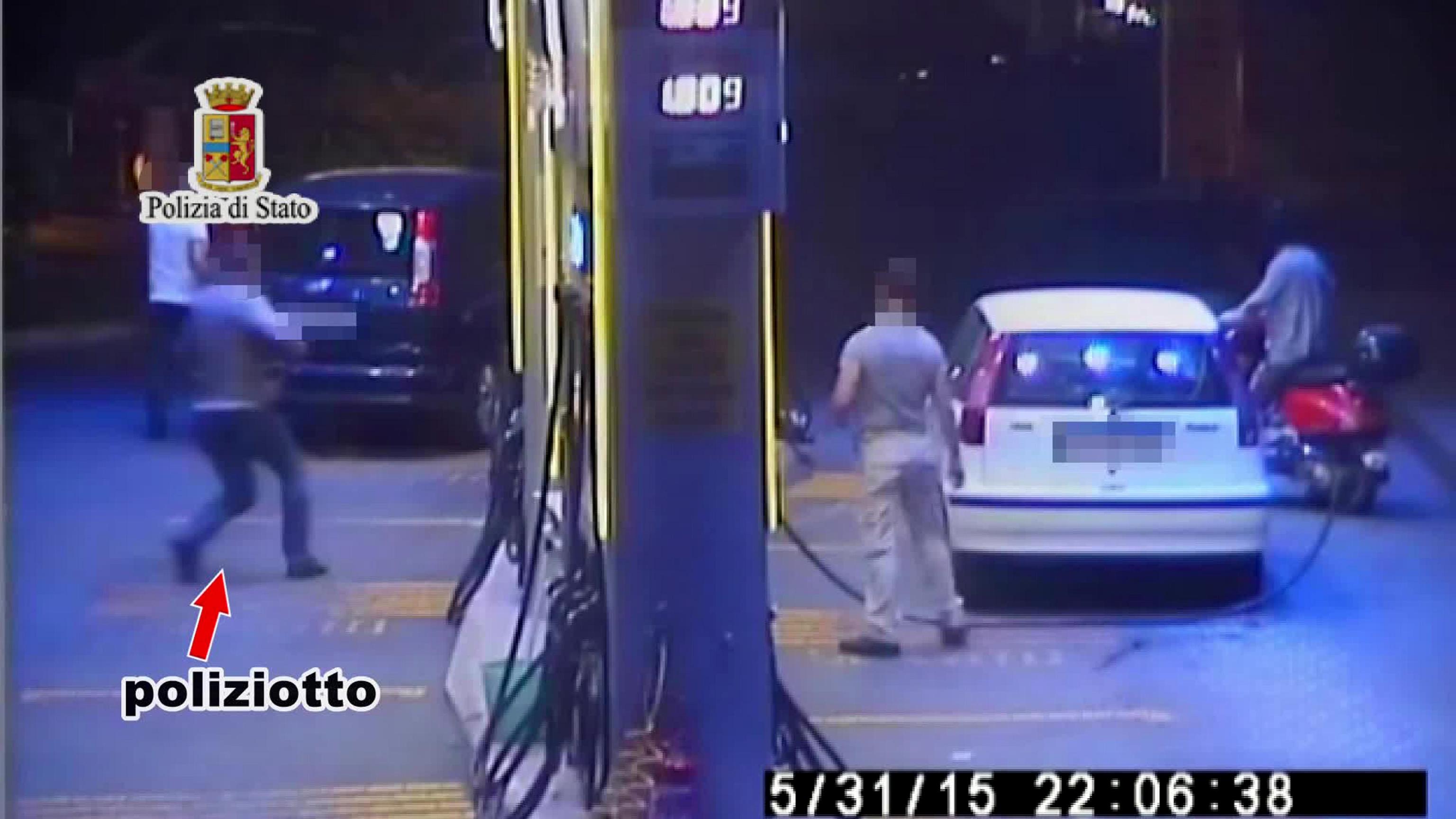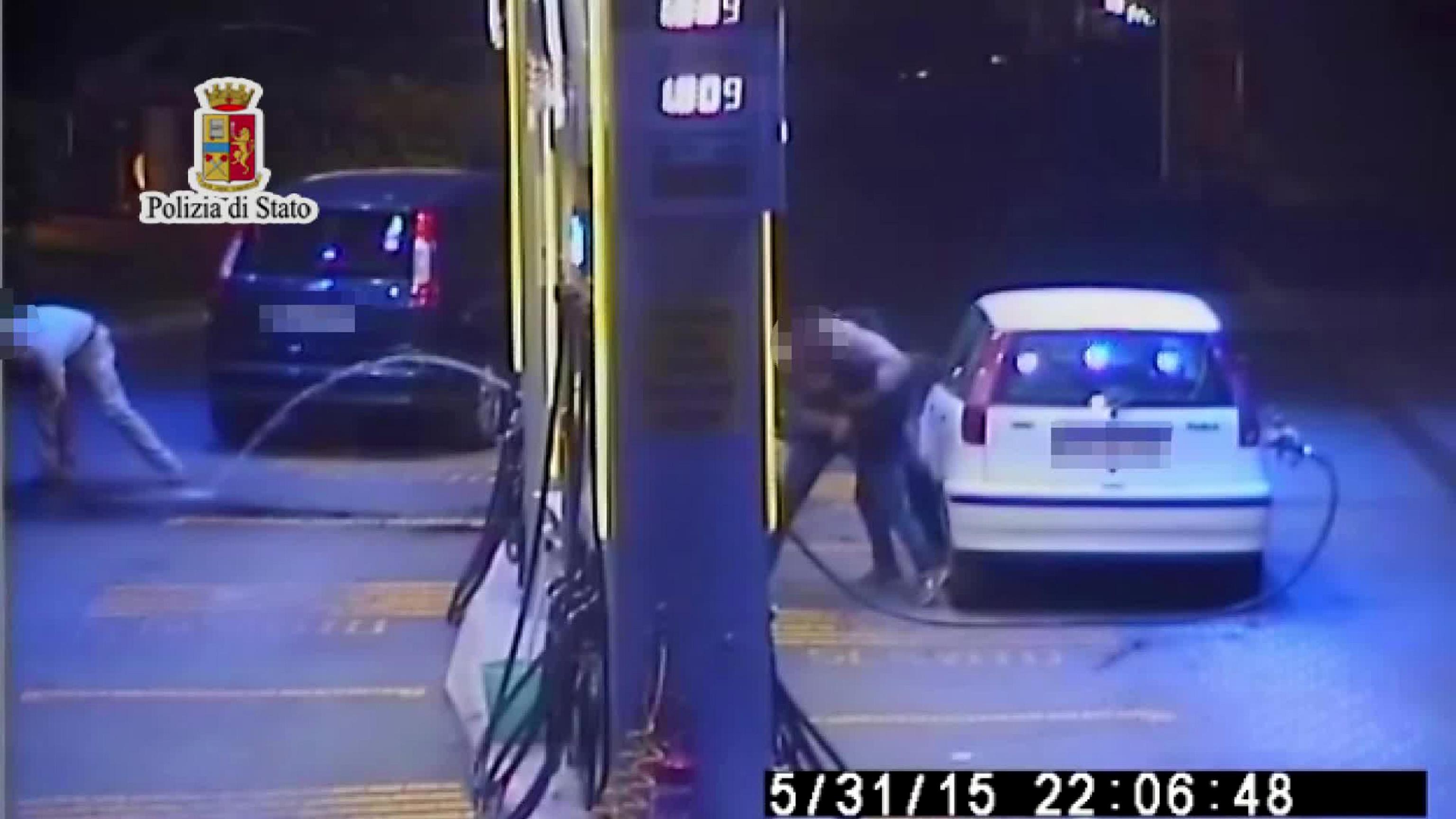 PALERMO – Il fermo immagine di un video distribuito dalla Polizia di Stato mostra un momento della tentata rapina ad un distributore di carburanti a Palermo avvenuto oggi 1 giugno 2015. Due giovani sono arrivati al distributore su un ciclomotore: il passeggero è andato da un dipendente e si è fatto dare 250 euro dopo avergli puntato il coltello. Poi si è diretto da un altro dipendente che forse si è opposto alla rapina e che è stato accoltellato a un braccio dal giovane.