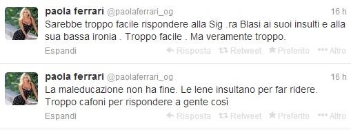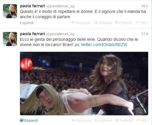 E subito è arriva la replica, piccata, di Paola Ferrari che ha prima fatto sapere, su Twitter, che “questo è il modo di rispettare le donne. E il signore che li manda ha anche il coraggio di parlare”. Poi “la maleducazione non ha fine. Le Iene insultano per far ridere. Troppo cafoni per rispondere a gente così”.